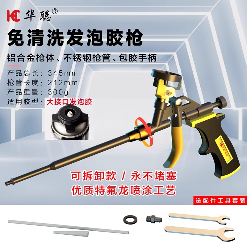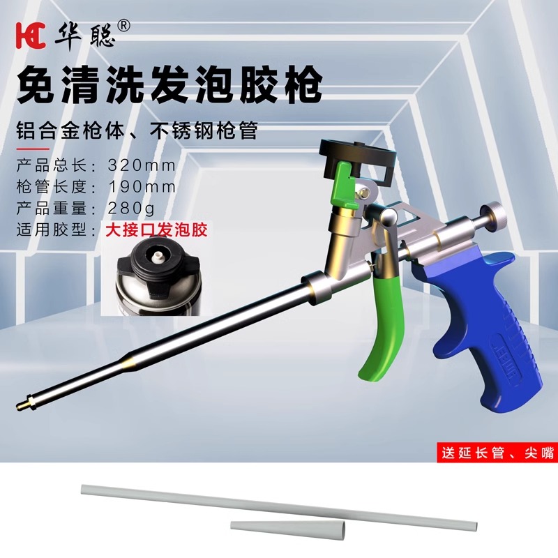 Huacong 폼 접착제 총 비 세척 확장 폴리 우레탄 폼 접착제 실란트 접착제 총 모든 금속 청소하기 쉬운 접착제 총스토어 가기