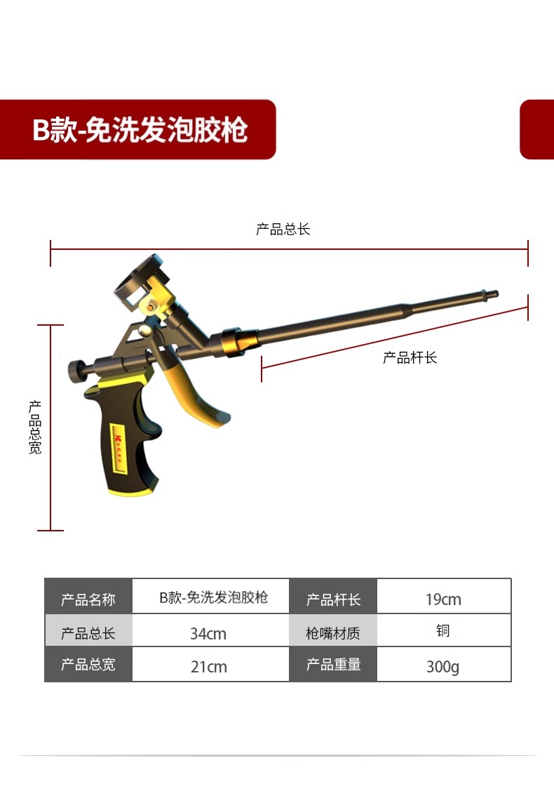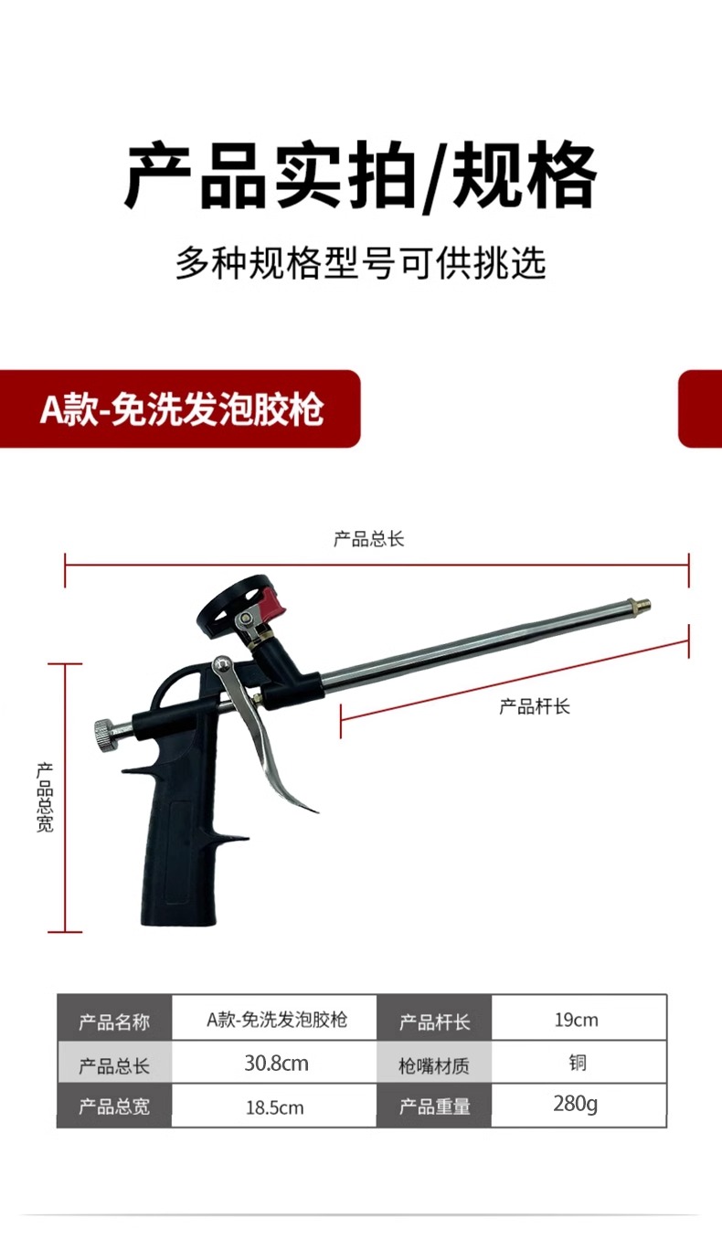 • 산업 스타일★스위치가 있는 알루미늄 합금 건 본체, 청소가 필요 없는 폼 글루건, 연장 튜브 팁 포함