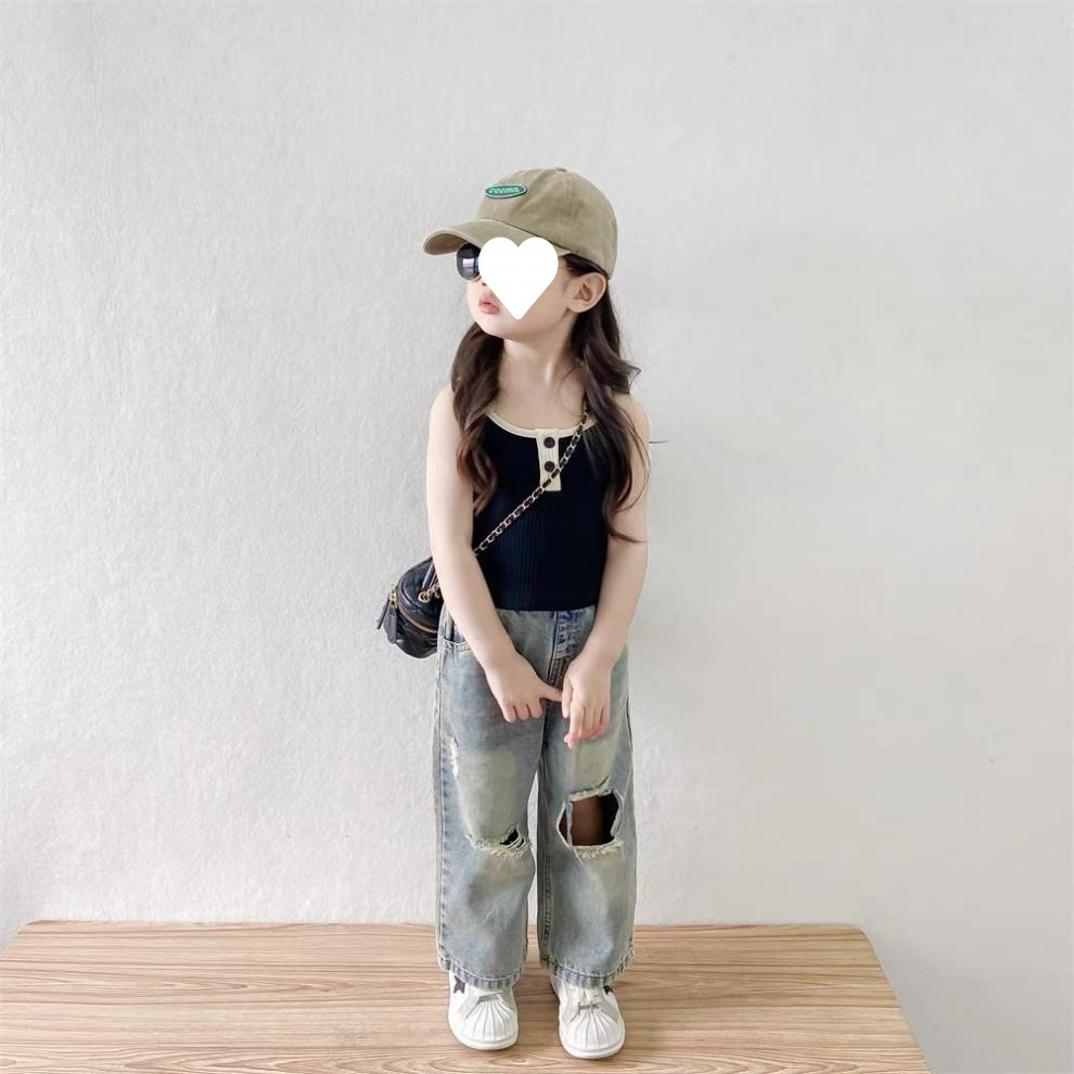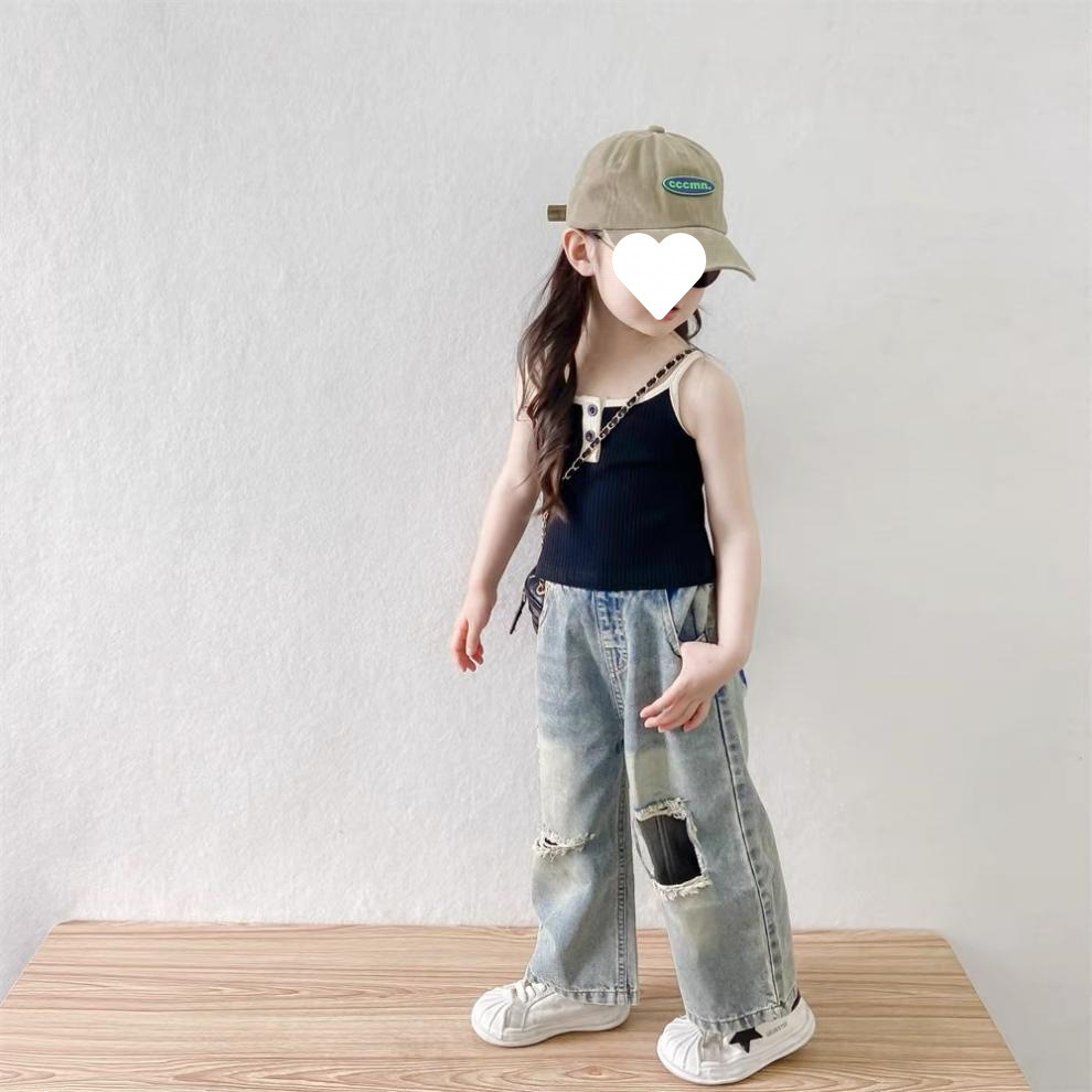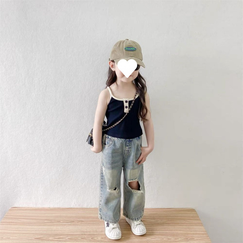 소녀 여름 원피스 세트 2025 새로운 스타일 아기 소녀 슬링 여름 복고풍 휴식