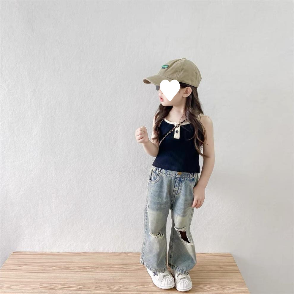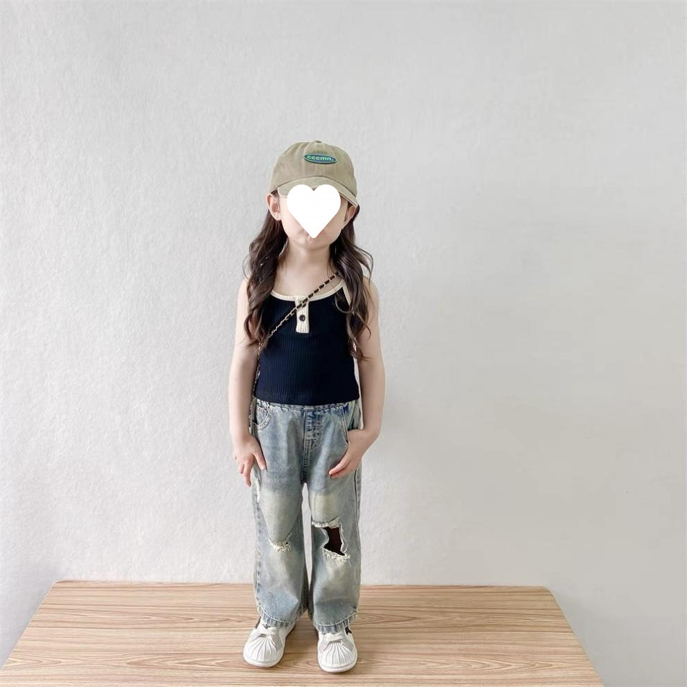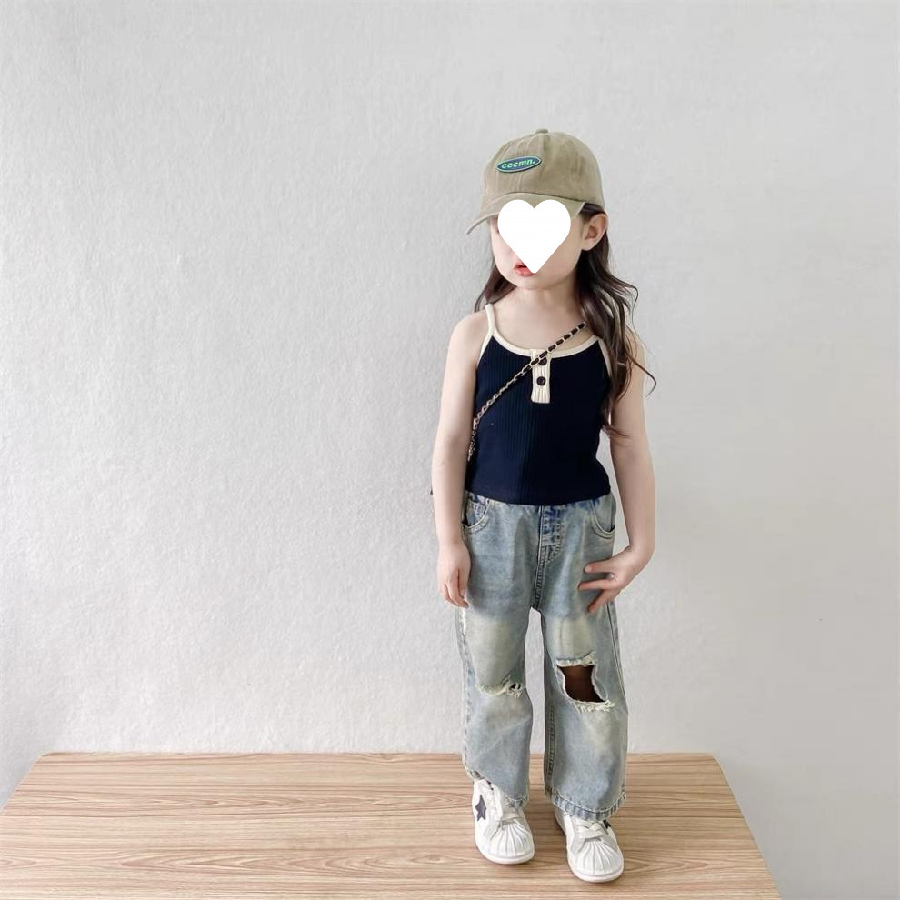 소녀 여름 원피스 세트 2025 새로운 스타일 아기 소녀 슬링 여름 복고풍 휴식스토어 가기