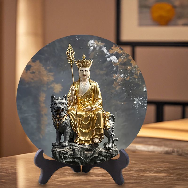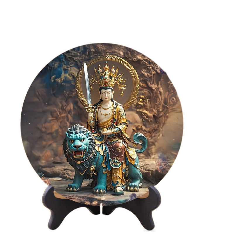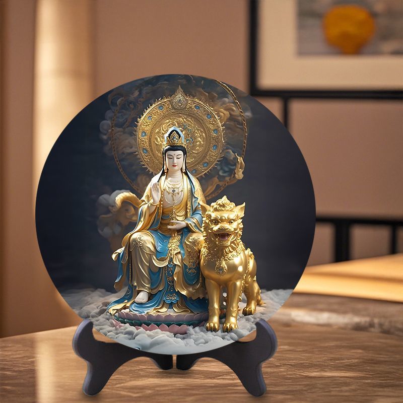 4 개의 보살 만주리 Puxian Guanyin Ksitigarbha 왕 장식 선물 연구 침실 중국 스타일 테이블 배달스토어 가기