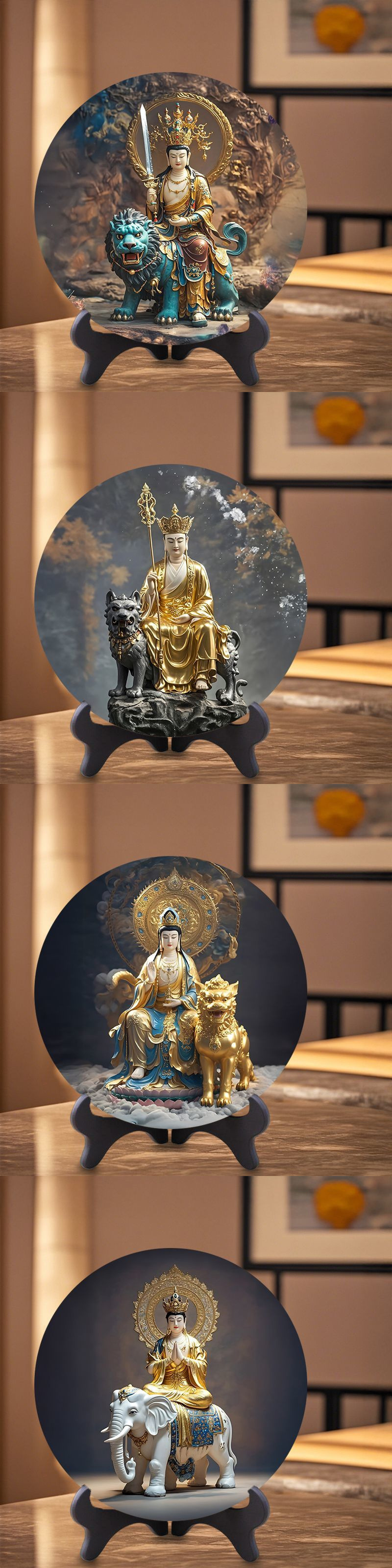 4 개의 보살 만주리 Puxian Guanyin Ksitigarbha 왕 장식 선물 연구 침실 중국 스타일 테이블 배달