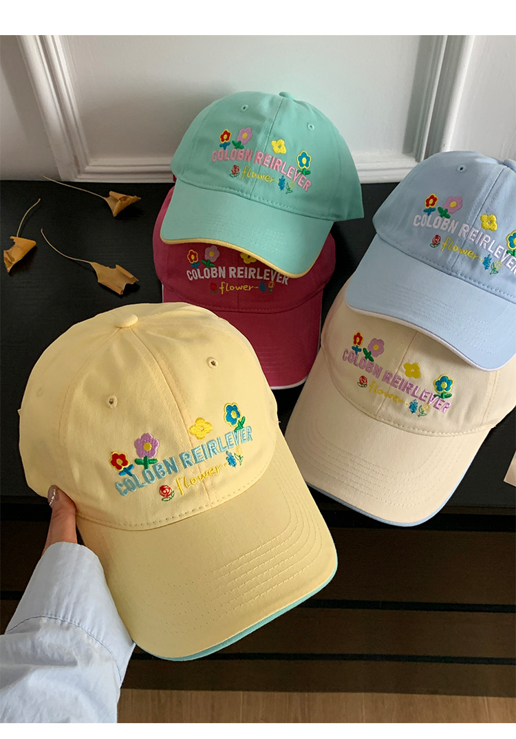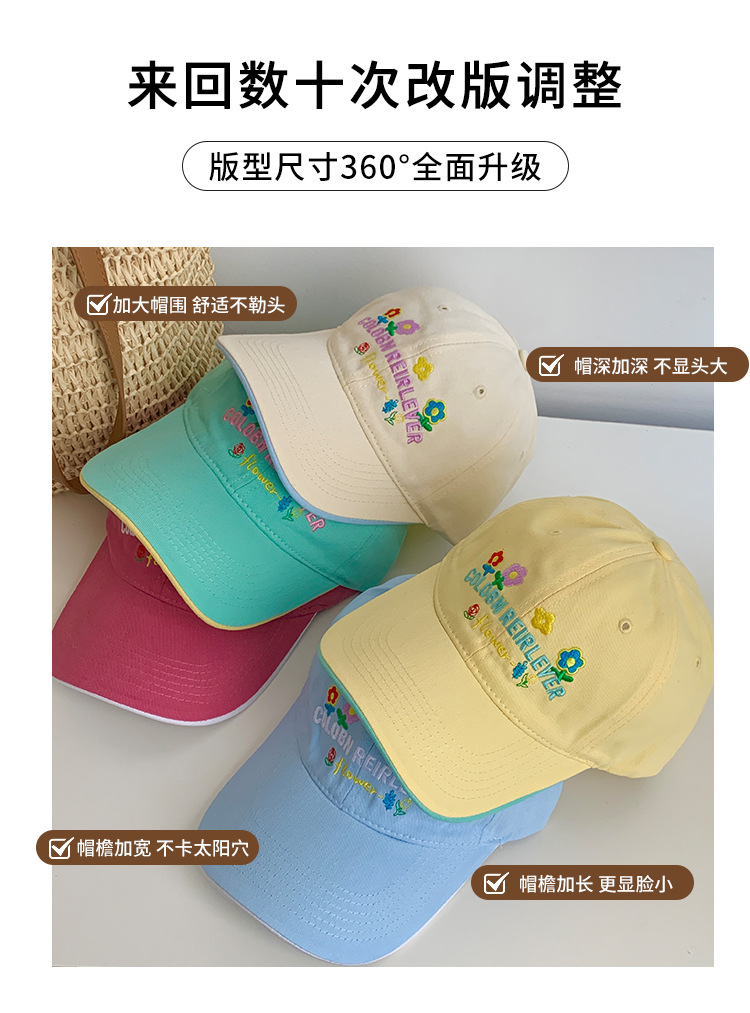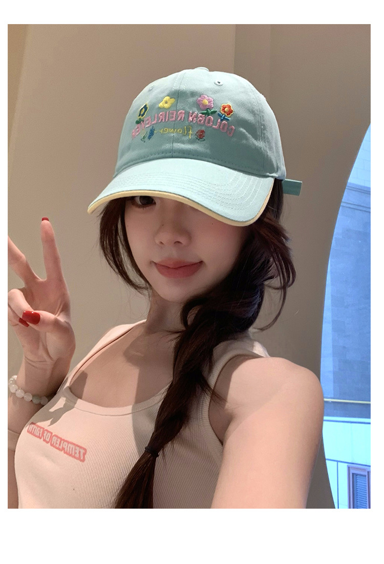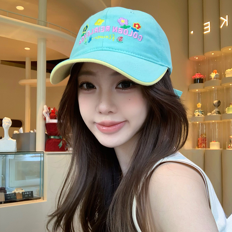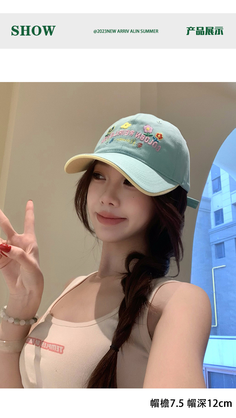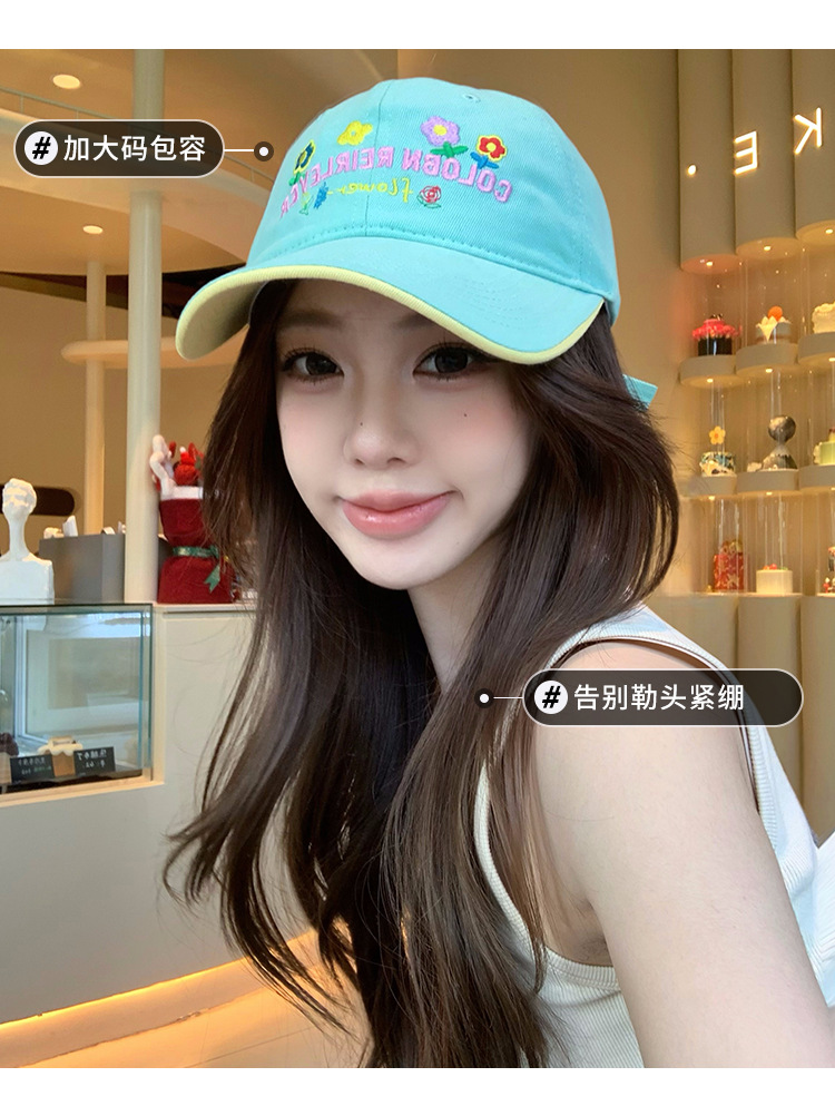 민트 녹색 꽃 수 놓은 야구 모자 여성의 봄과 여름 귀여운 큰 머리 모자 와이드 브림 얼굴 작은 모자스토어 가기