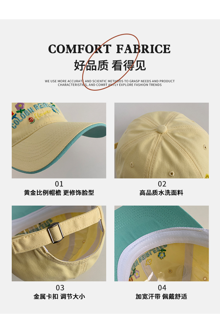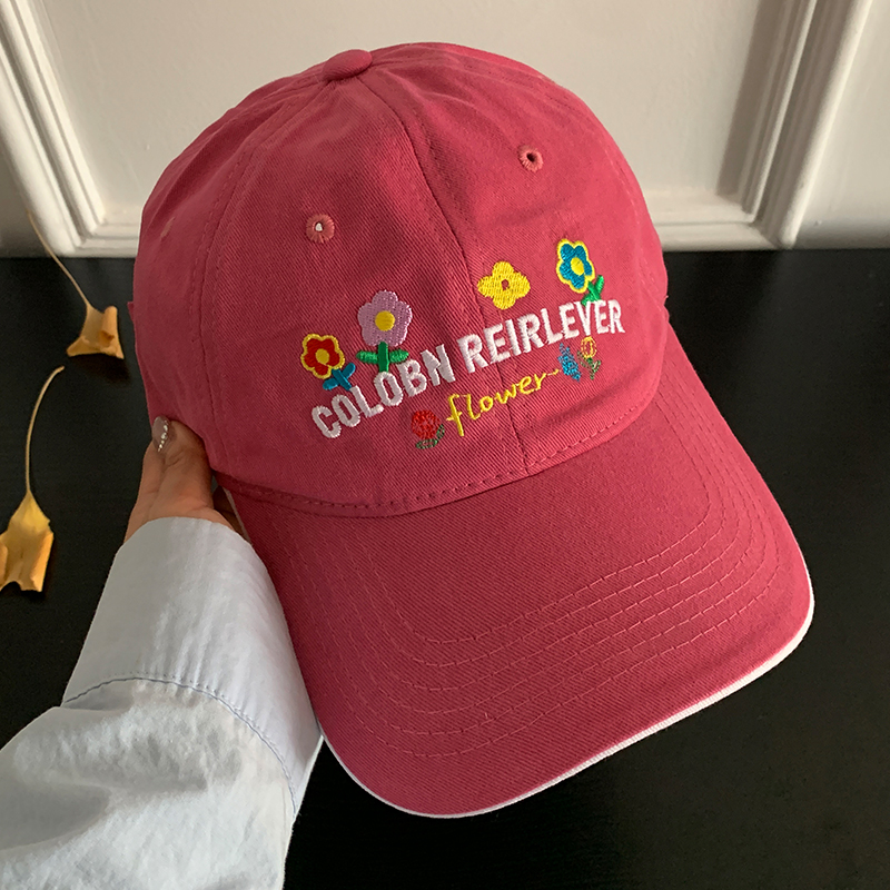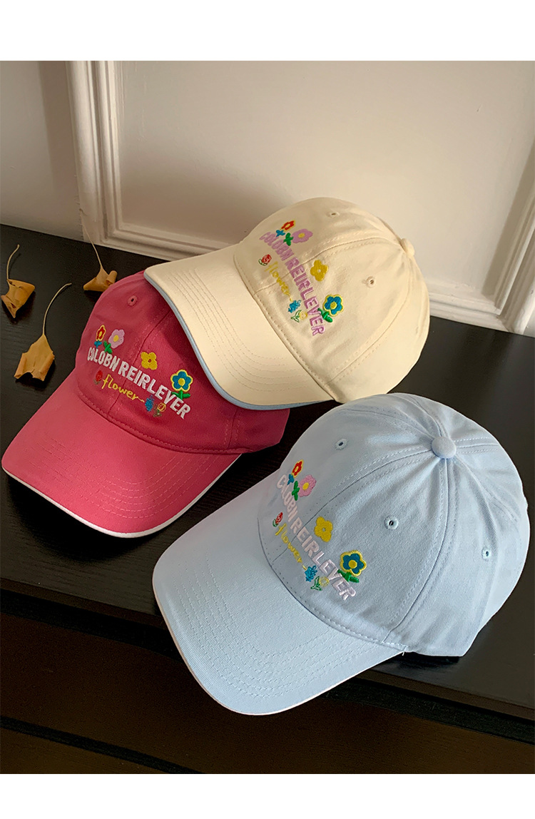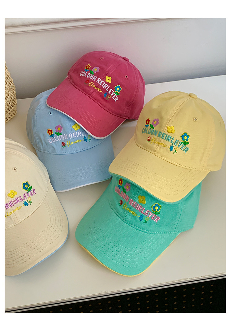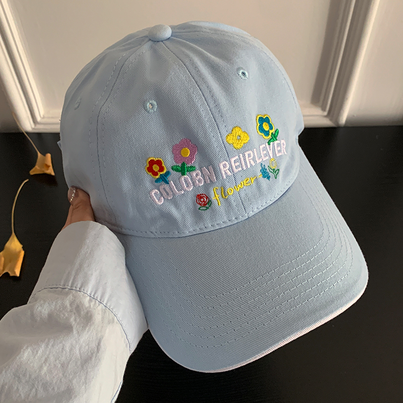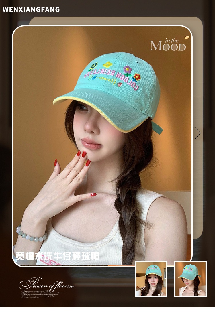 민트 녹색 꽃 수 놓은 야구 모자 여성의 봄과 여름 귀여운 큰 머리 모자 와이드 브림 얼굴 작은 모자스토어 가기