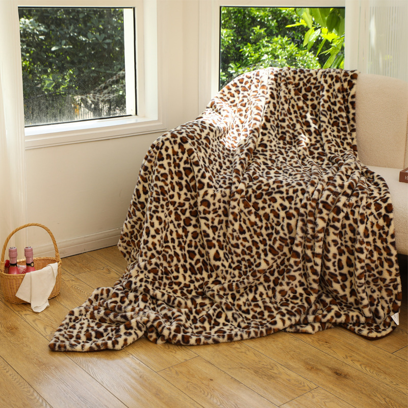 새로운 Ins 스타일 모방 토끼 모피 인쇄 우유 인쇄 여름 플란넬 소파 담요 레오파드 무늬 선물 담요