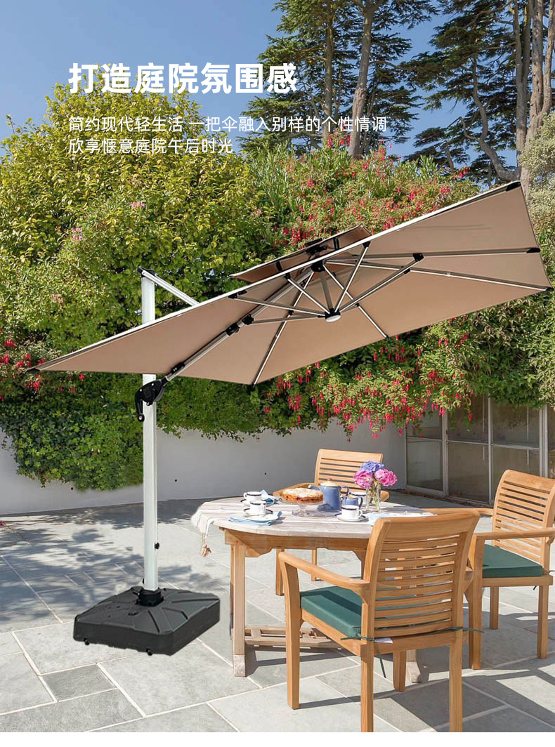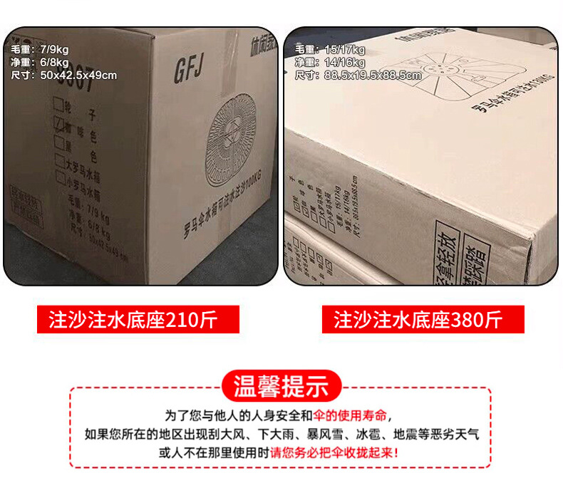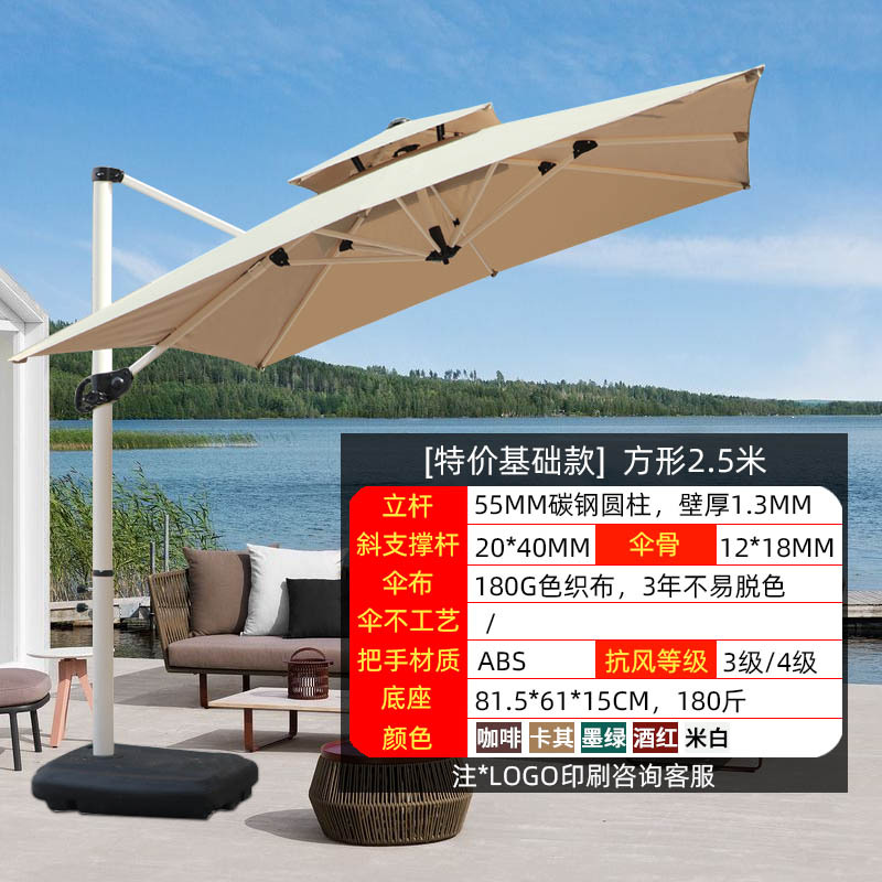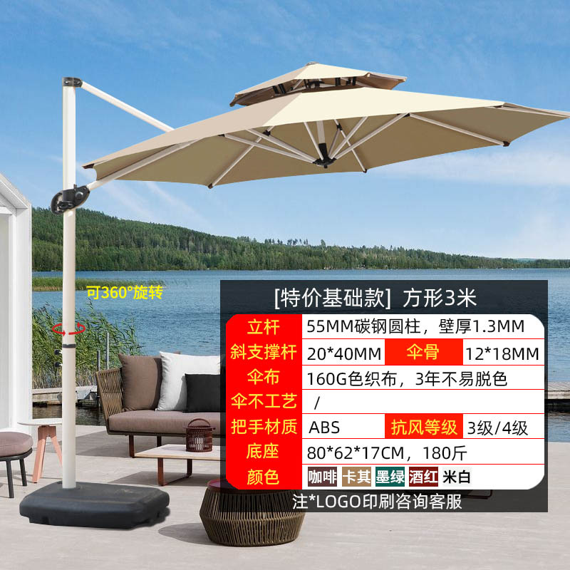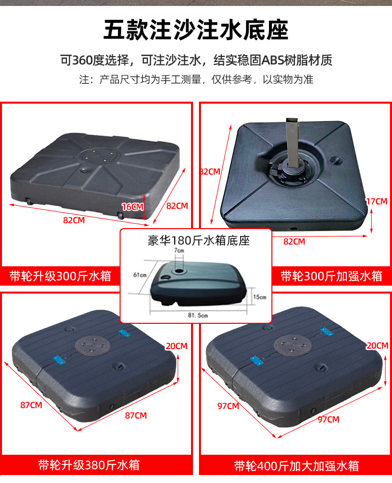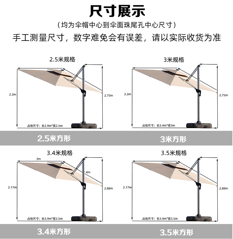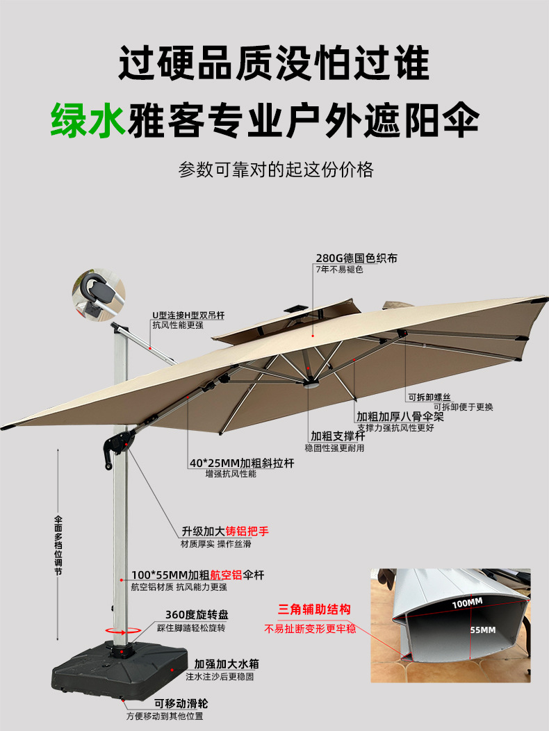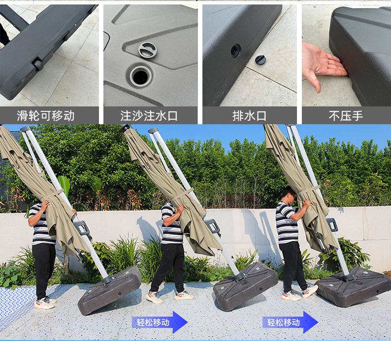 • 【향상된 버전|주조 알루미늄 손잡이 램프 비드 스타일 80mm 항공 알루미늄 우산 기둥] 3m 정사각형 + 150kg 바퀴 달린 물 탱크
