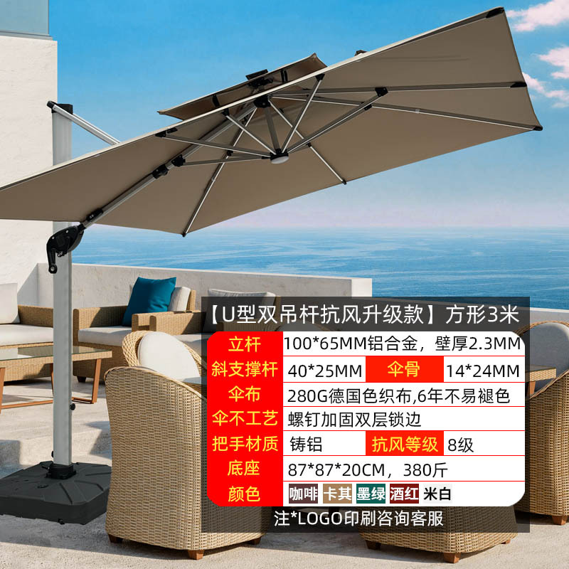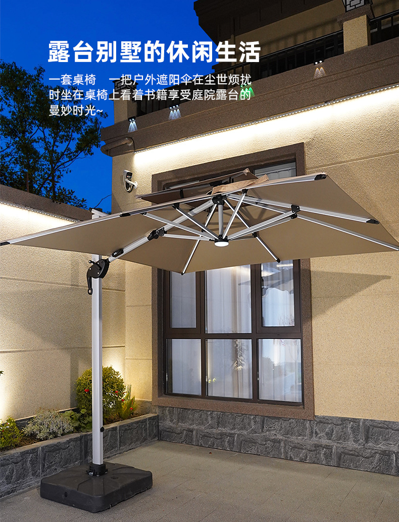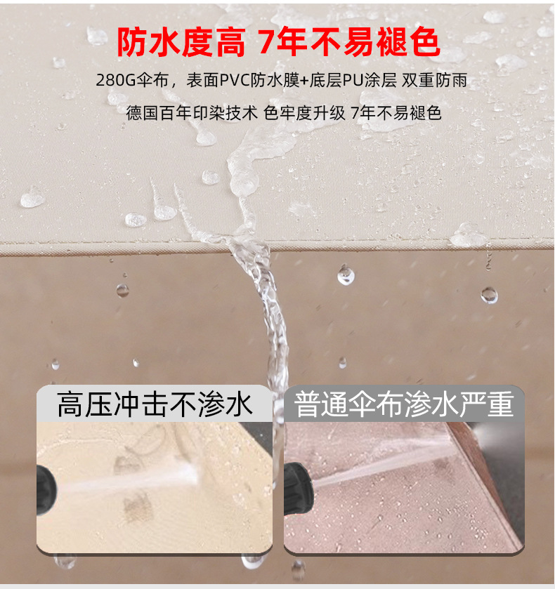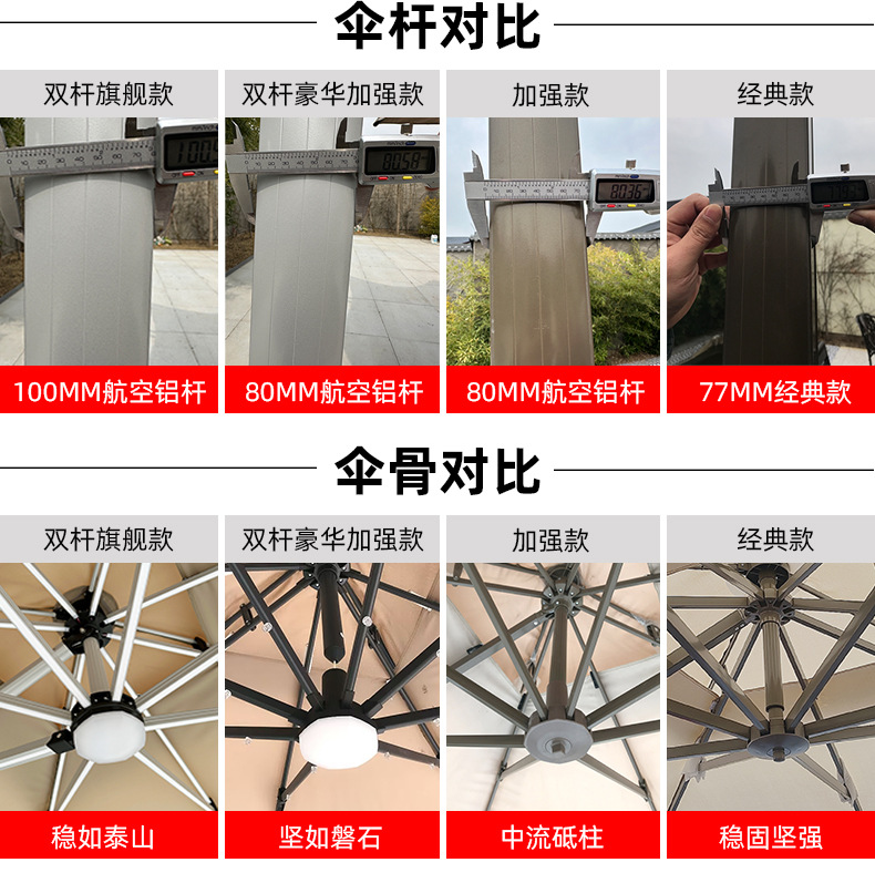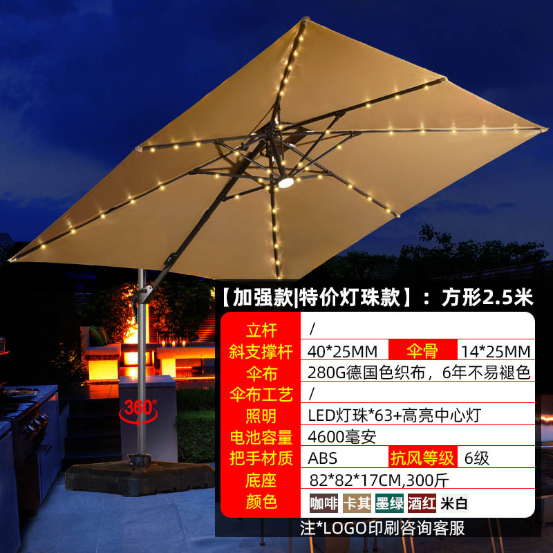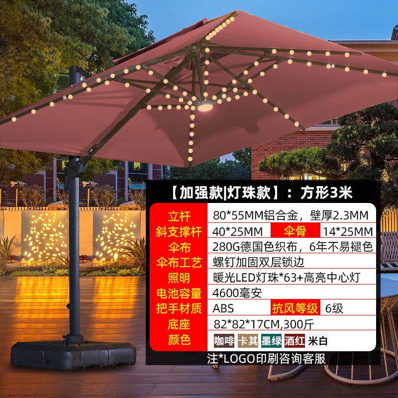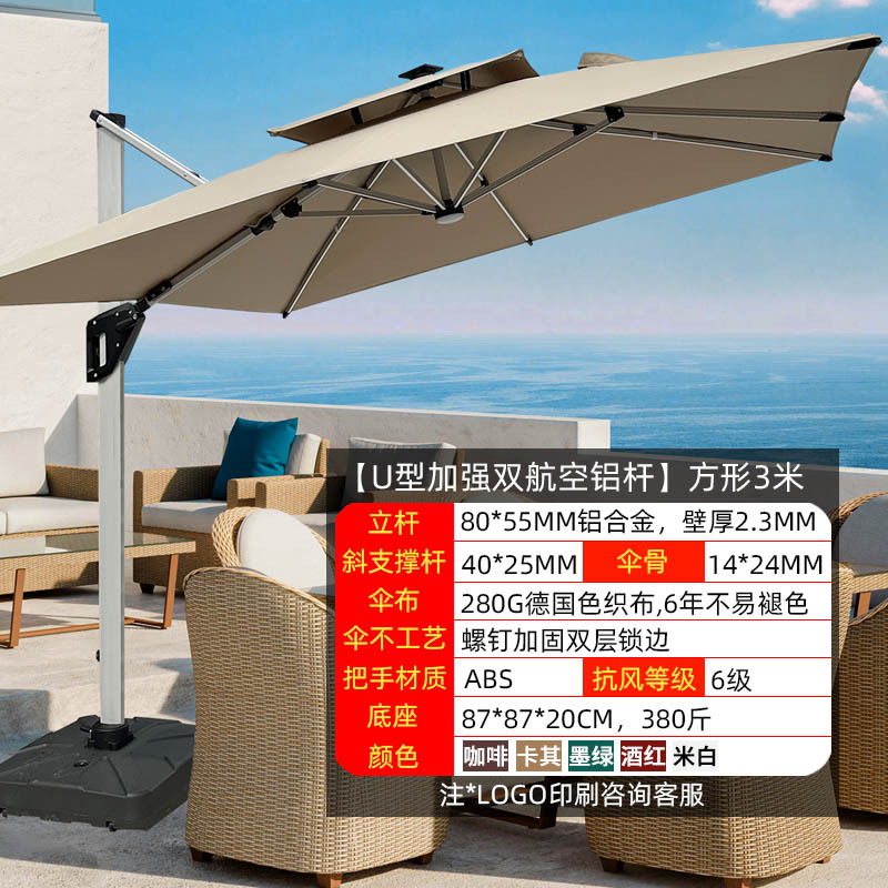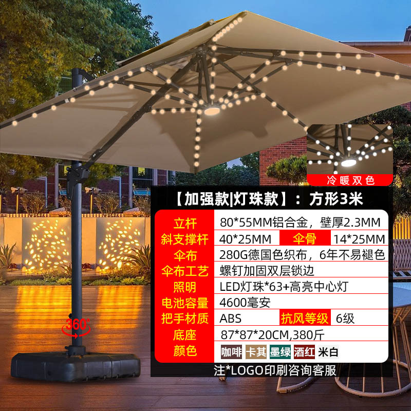 • 【향상된 버전|주조 알루미늄 핸들 램프 비드 스타일 80mm 항공 알루미늄 우산 기둥] 3m 정사각형 + 190kg 초안정 물 탱크