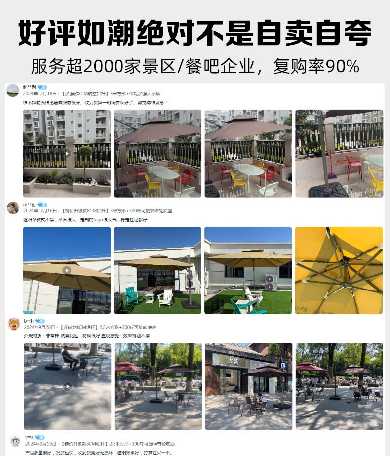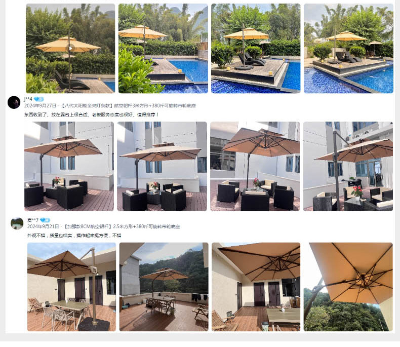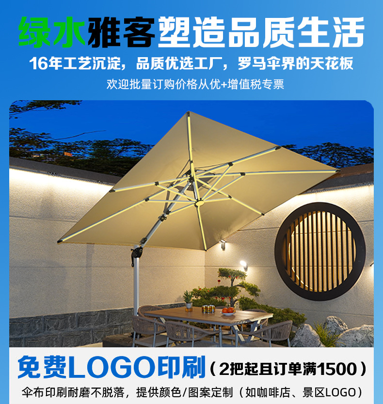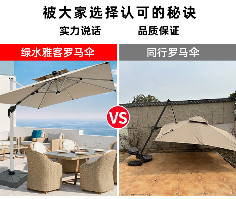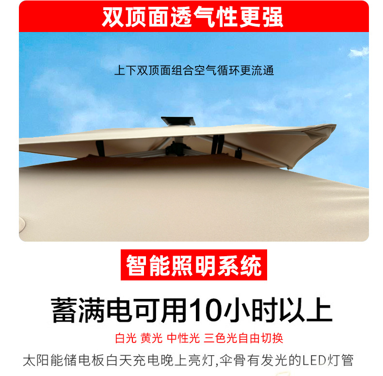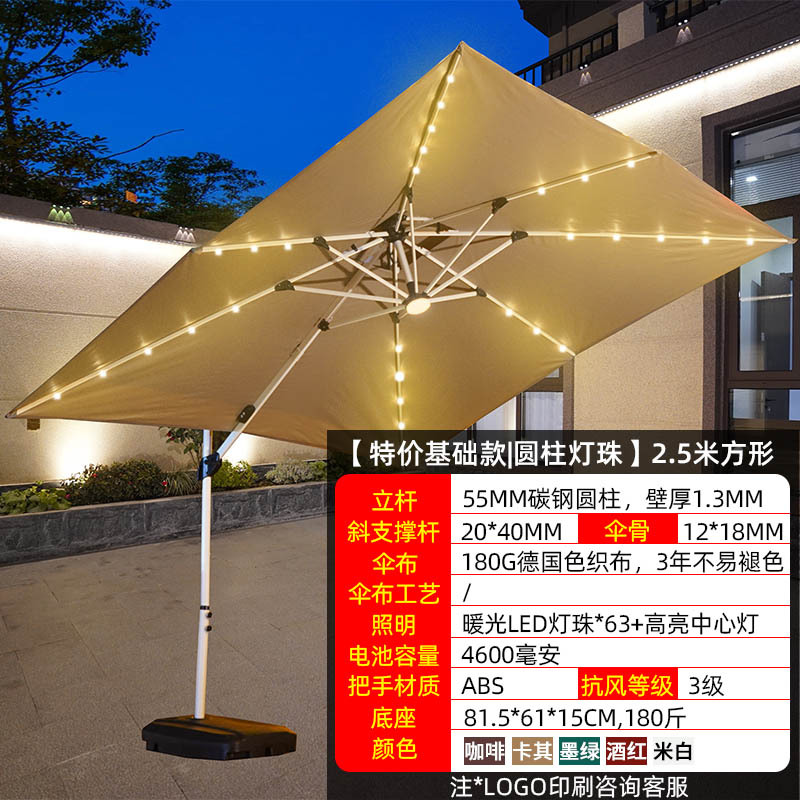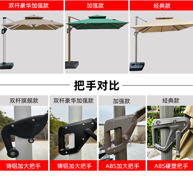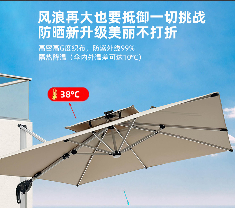 • 【향상된 버전|주조 알루미늄 핸들 램프 비드 스타일 80mm 항공 알루미늄 우산 기둥] 3m 정사각형 + 190kg 초안정 물 탱크