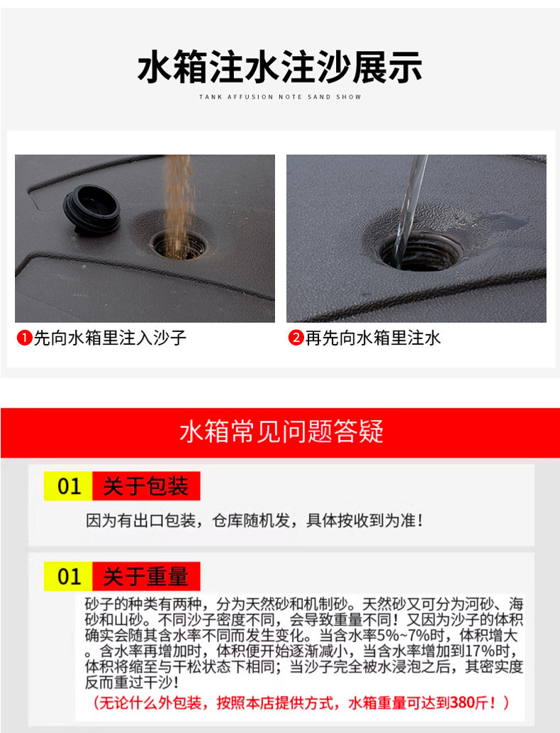 • 【향상된 버전|2색 램프구슬 80mm 우산봉] 정사각형 2.5m개 + 바퀴 달린 물탱크 150kg개
