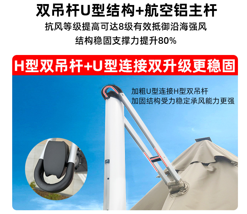 • [U자형 더블붐 럭셔리 모델|세 가지 색상의 라이트 스트립|주조 알루미늄 손잡이|80MM 항공 알루미늄 기둥] 2.5m 평방 + 150kg 바퀴 달린 물 탱크