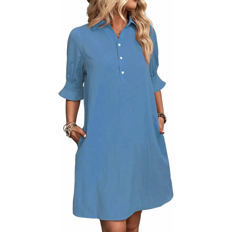 2025 국경을 넘는 유럽과 미국의 봄과 가을 여성의 새로운 AliExpress Amazon은 캐주얼 한 느슨한 단색 원피스 기원합니다.스토어 가기