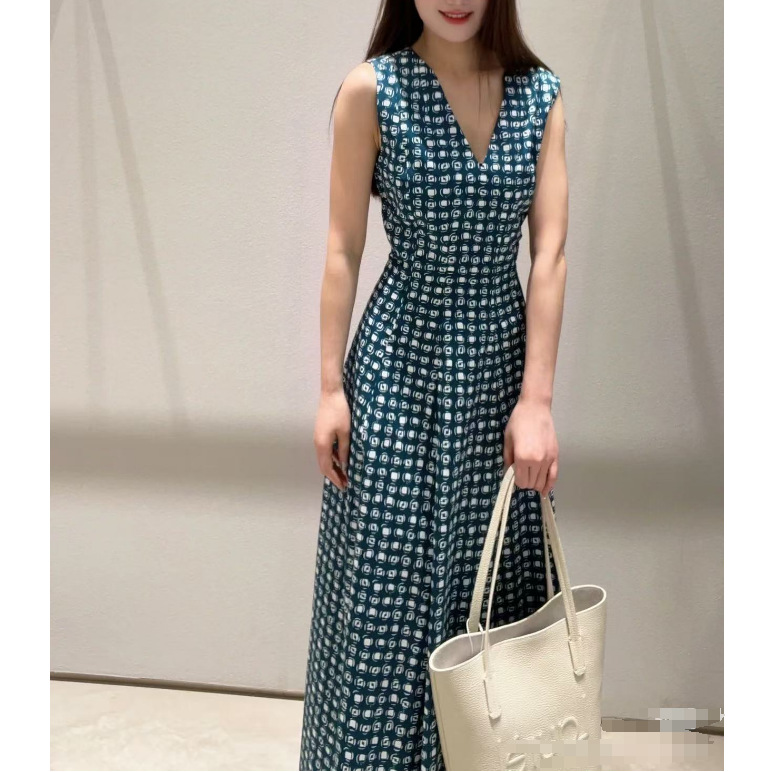 Lau25 봄과 여름 새로운 캐주얼 휴일 스타일 인쇄 면 민소매 원피스스토어 가기