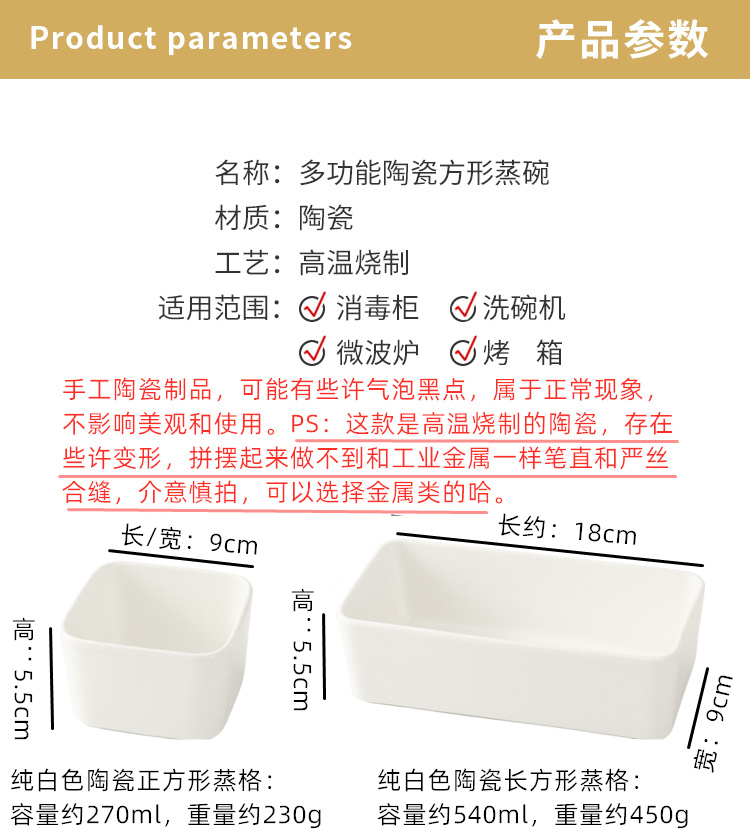 아기 계란 커스터드 찐 케이크 찐 그릇 작은 밥 그릇 찐 계란 그릇 직사각형 세라믹 전기 증기선 이유식 보충 교재스토어 가기
