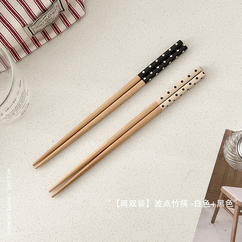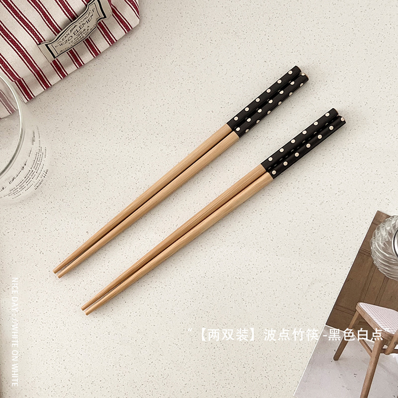 • [2개입] 도트무늬 대나무젓가락 - 흰색 도트무늬가 있는 검정색