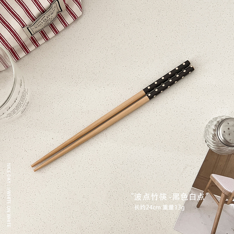 • 물방울 무늬 대나무 젓가락 - 흰색 점이 있는 검정색