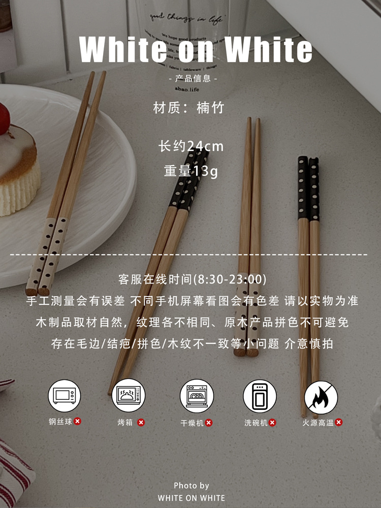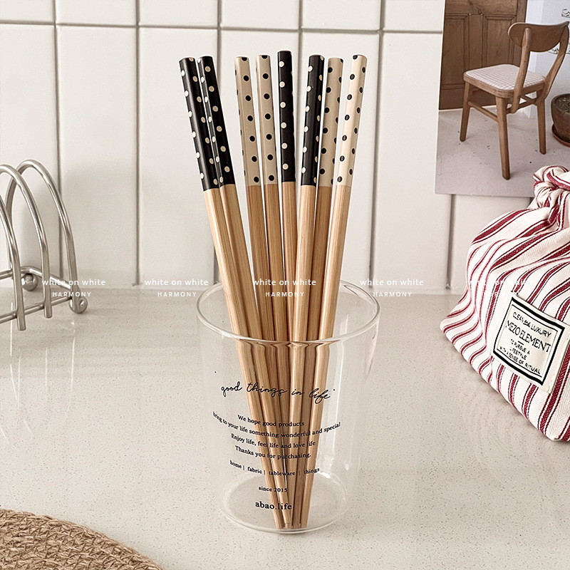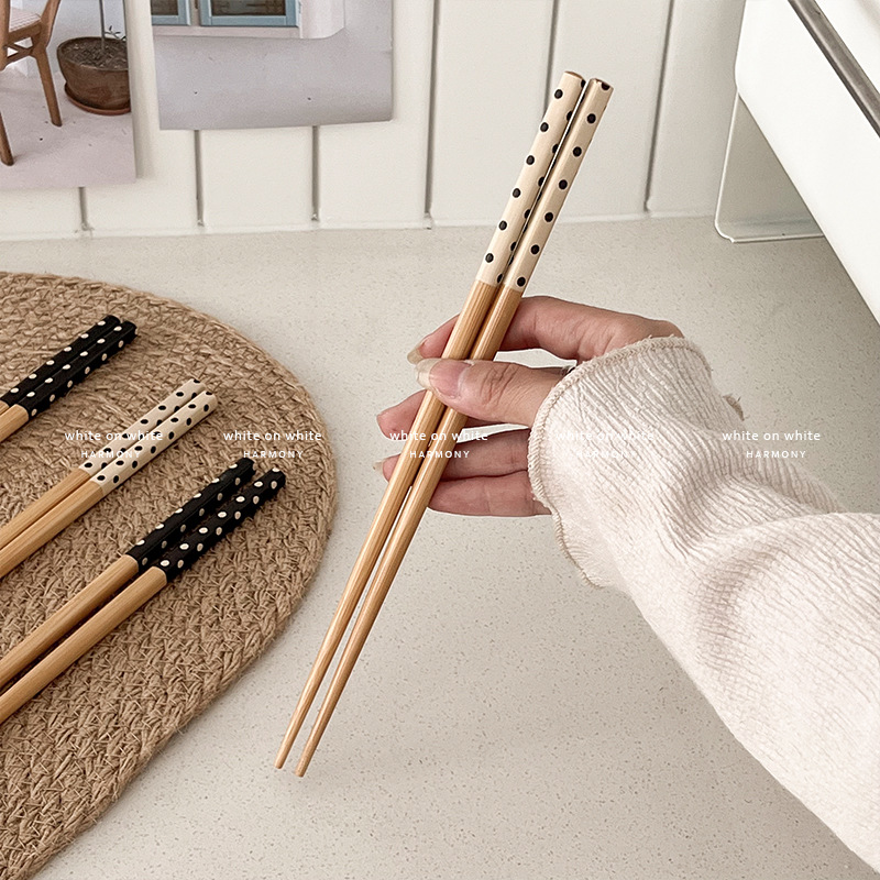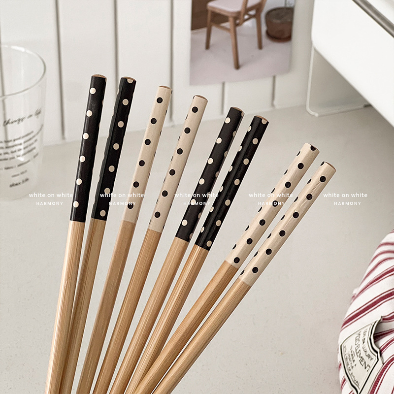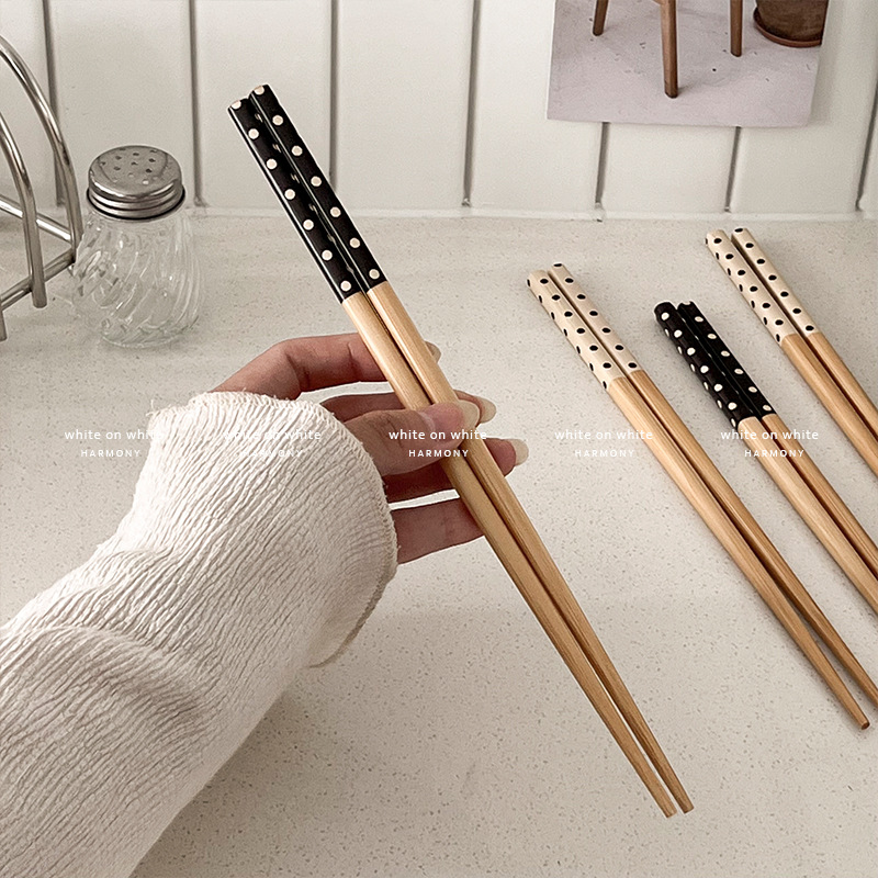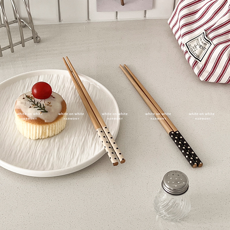 • [2개입] 물방울무늬 대나무젓가락 - 화이트+블랙
