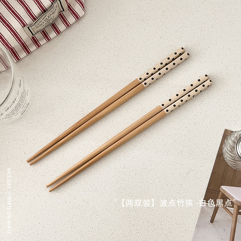 • [2개입] 물방울무늬 대나무젓가락 - 흰색에 검은색 점