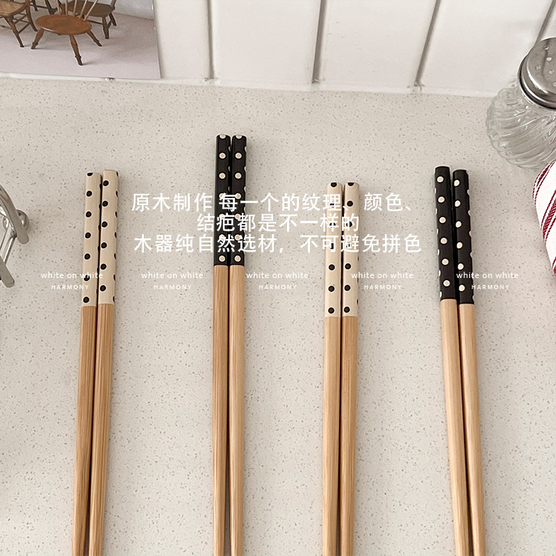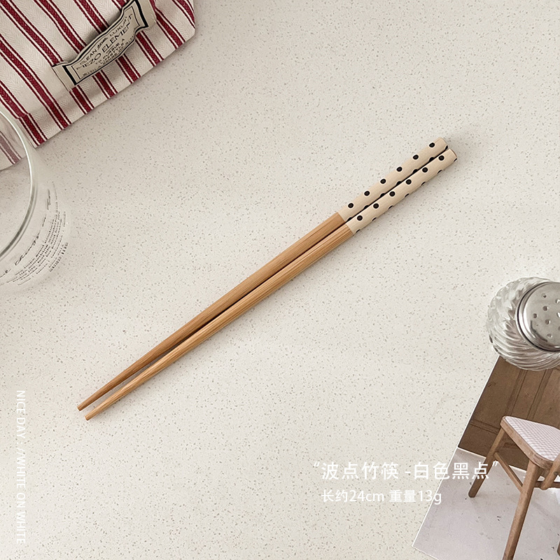 • 물방울 무늬 대나무 젓가락 - 흰색과 검은색 점