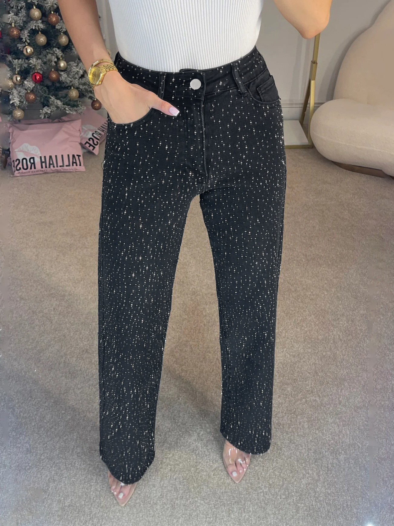대외 무역 유럽과 미국 아마존 여성 착용 풀 다이아몬드 세척 청바지 여성 고급 하이 웨이스트 스트레이트 바지 스파이스 걸스 바지스토어 가기