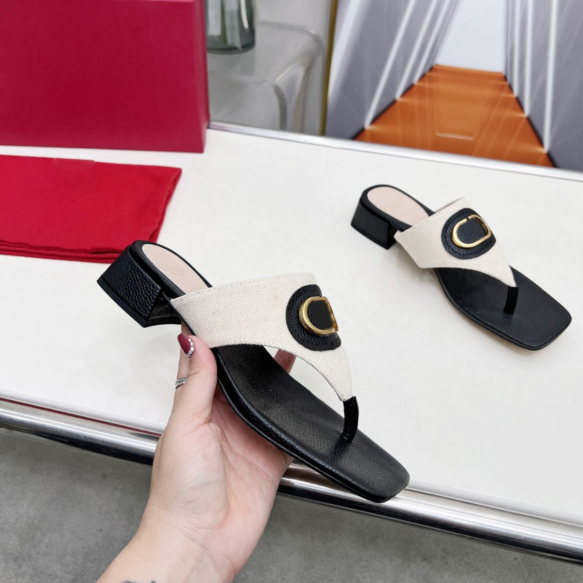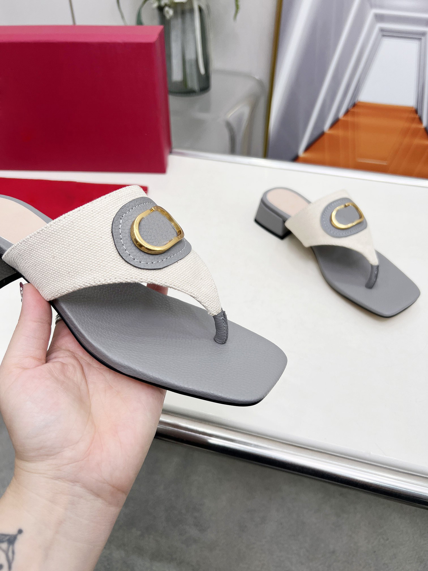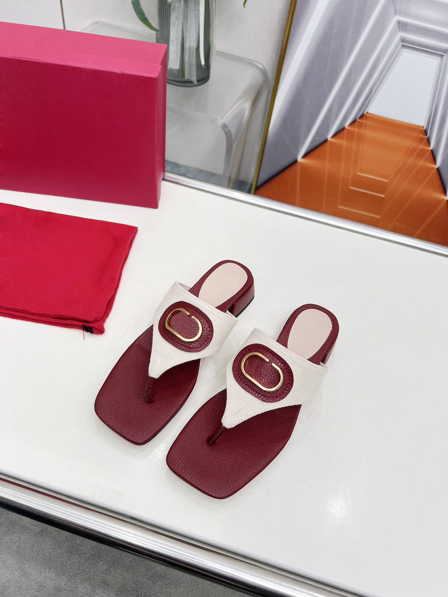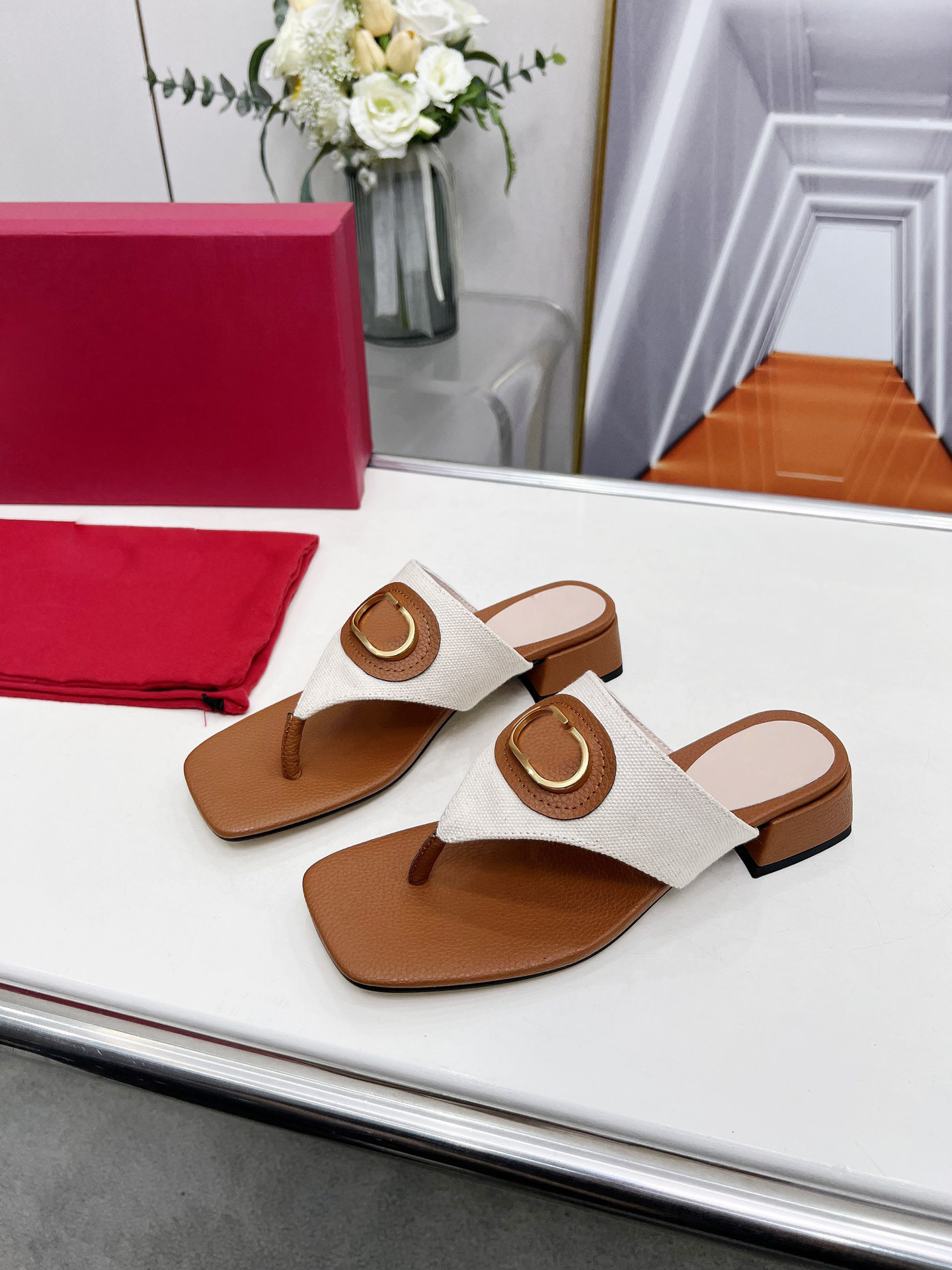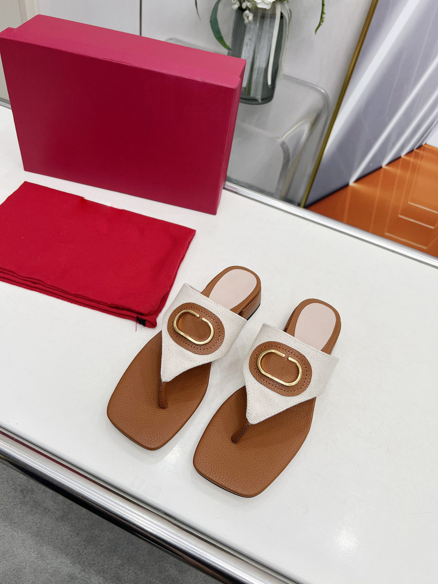 대외 무역 여성 플랫 바닥 슬리퍼 205 이 사각형 머리 소 가죽 인쇄 T 자형 슬리퍼 제조 업체 도매스토어 가기