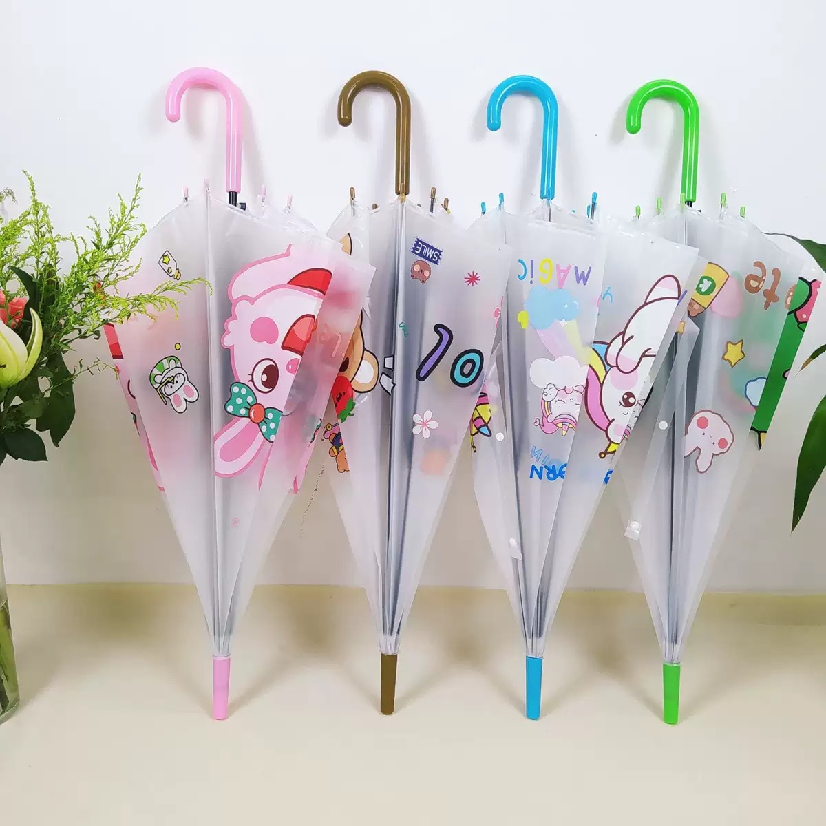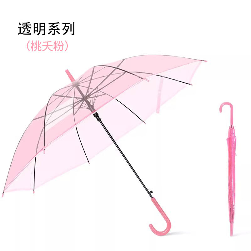투명 우산 인터넷 인기있는 어린이 우산 원 도매 스트레이트 핸들 로고 광고 작은 명확한 새로운 높은 색상 값 긴 핸들 자동 우산스토어 가기