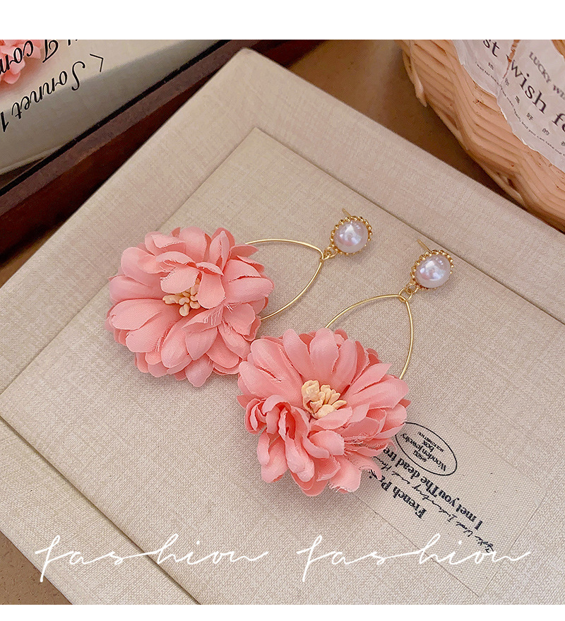 모리 진주 꽃 귀걸이 긴 패션 성격 과장된 달콤한 핑크 데이지 귀걸이 우아한 귀걸이