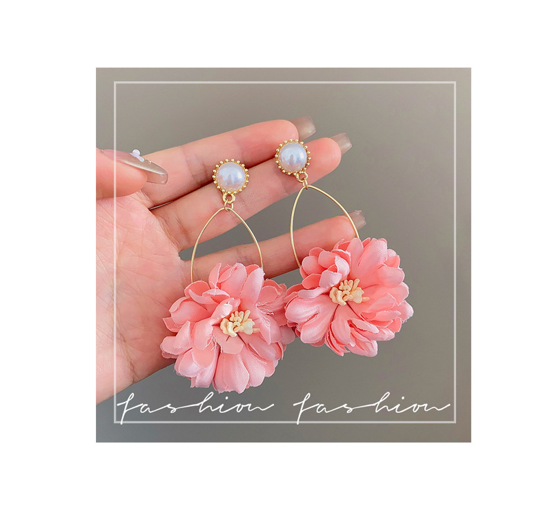 모리 진주 꽃 귀걸이 긴 패션 성격 과장된 달콤한 핑크 데이지 귀걸이 우아한 귀걸이스토어 가기