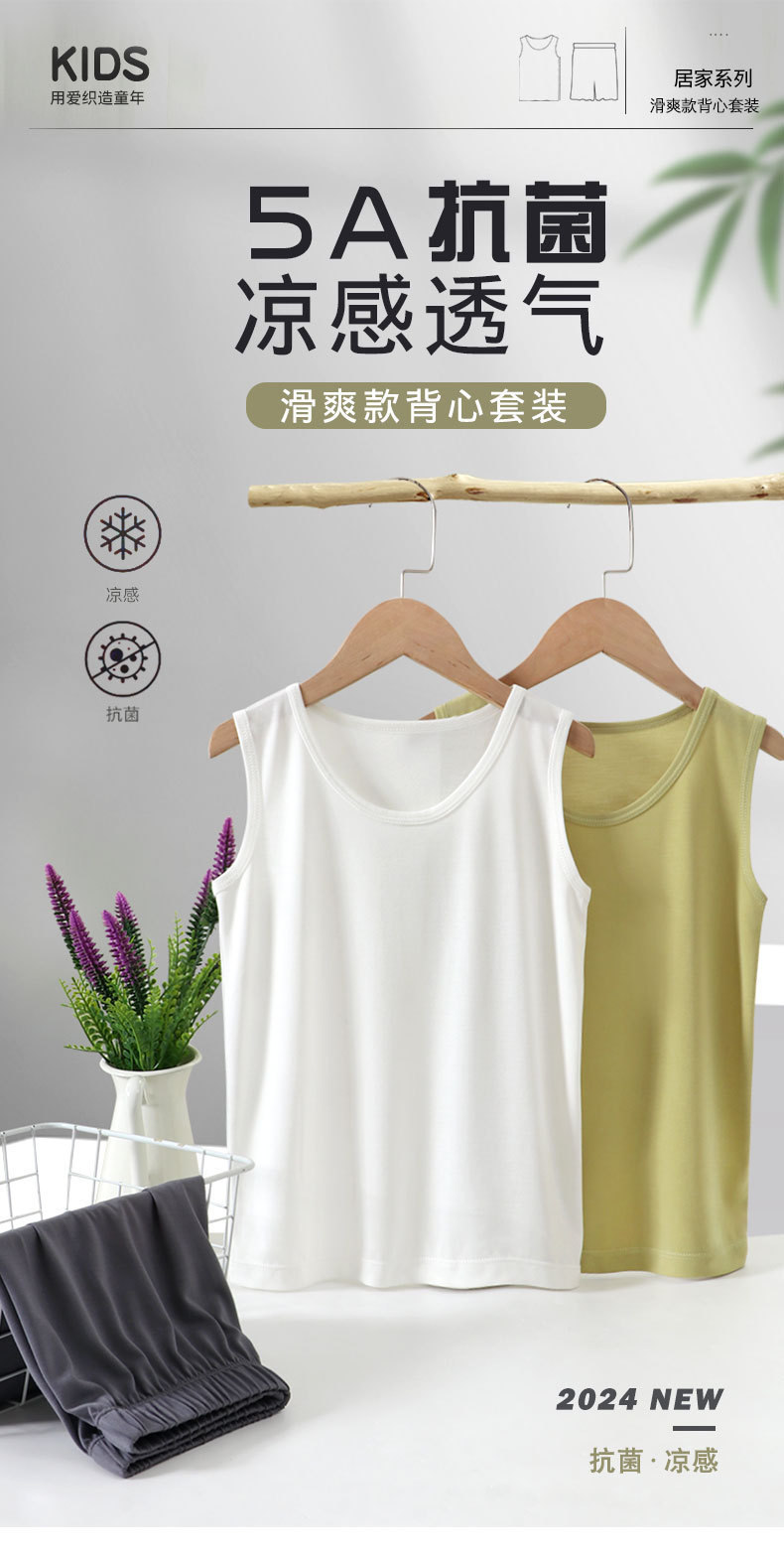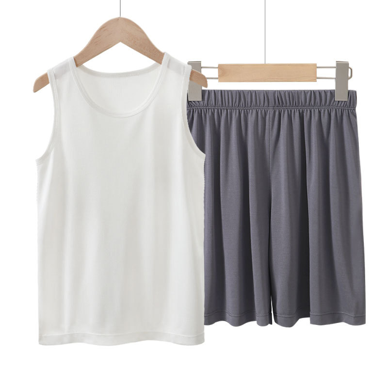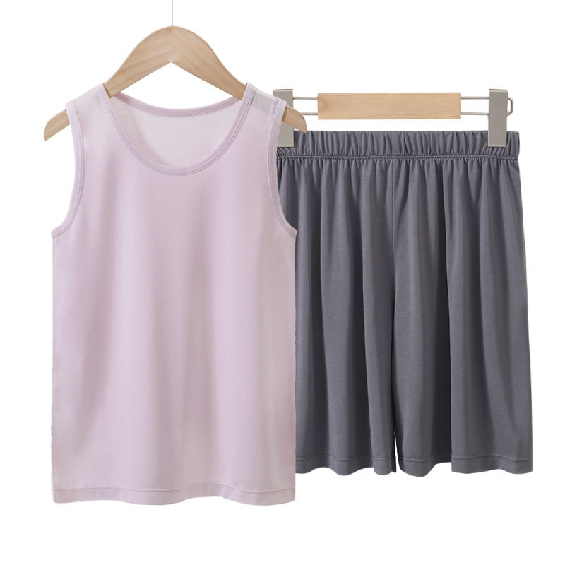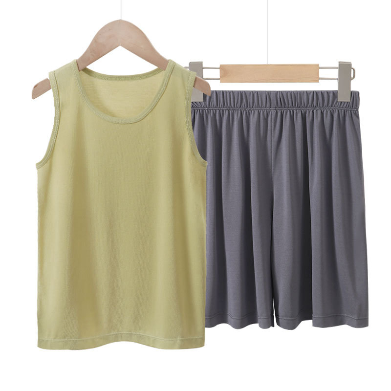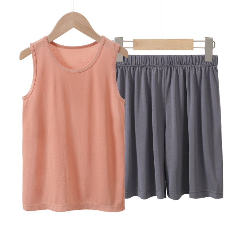 국경 간 어린이 조끼 세트 홈 의류 남녀 파자마 투피스 아기 조끼 반바지 세트 여름 얇은스토어 가기