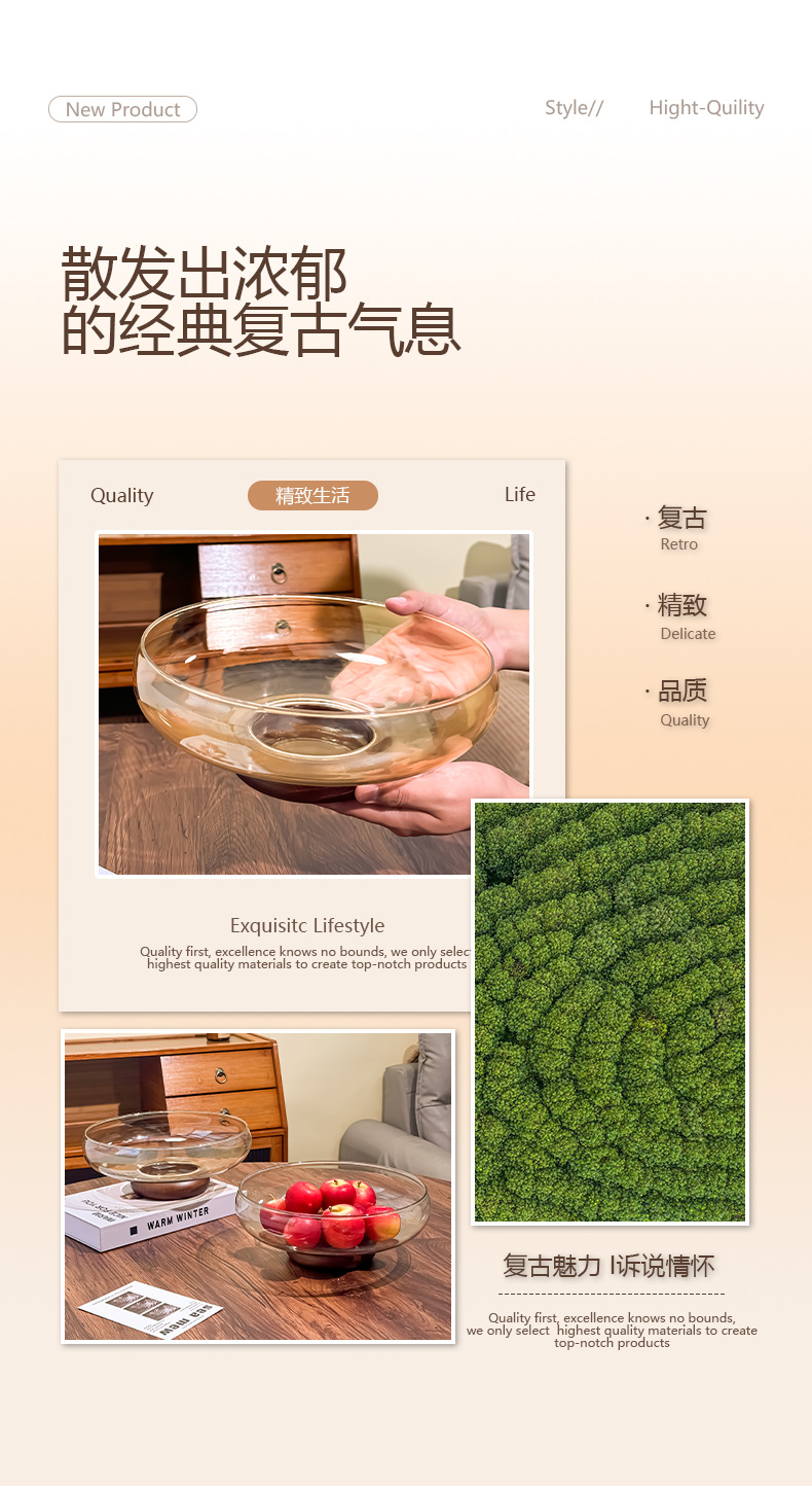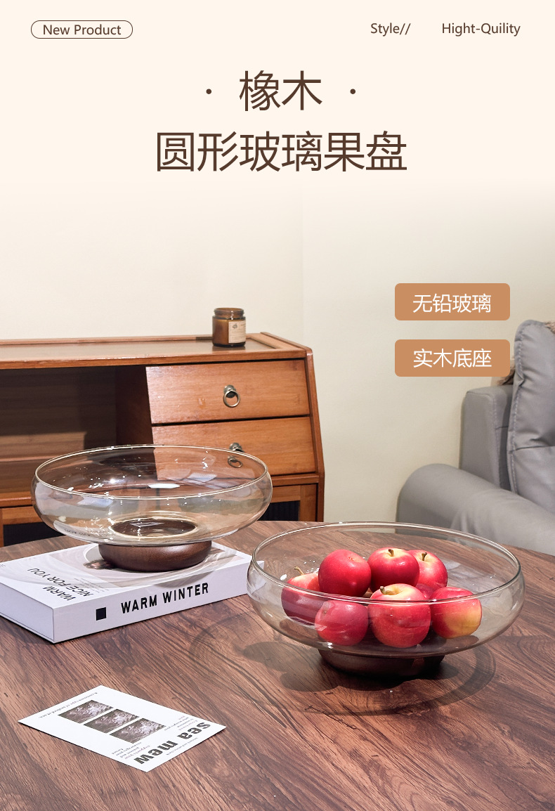 아카시아 나무 유리 스낵 과일 플레이트 라이트 럭셔리 노래 스타일 미적 고급 감각 과일 플레이트 캔디 플레이트 거실 스낵 진자