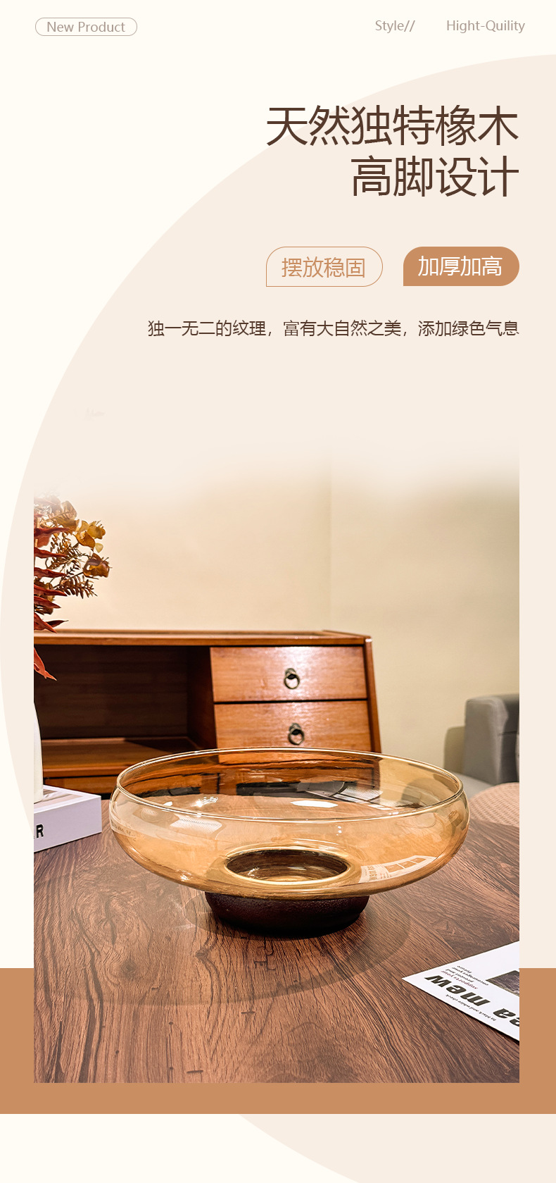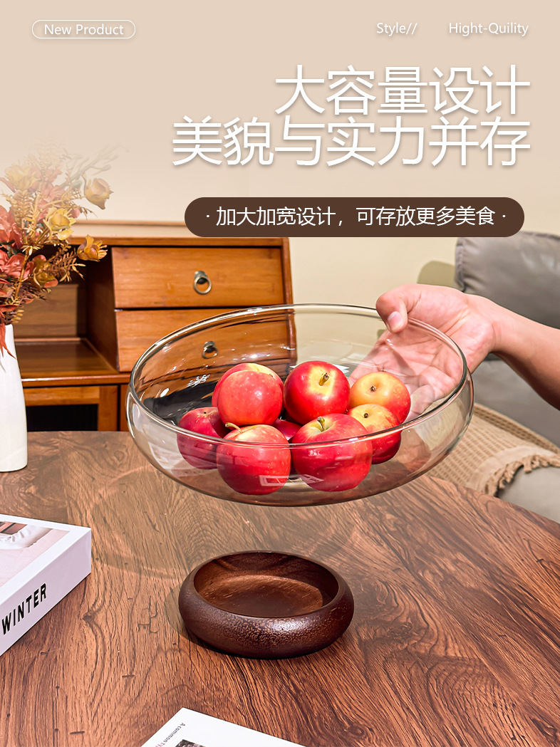 아카시아 나무 유리 스낵 과일 플레이트 라이트 럭셔리 노래 스타일 미적 고급 감각 과일 플레이트 캔디 플레이트 거실 스낵 진자스토어 가기