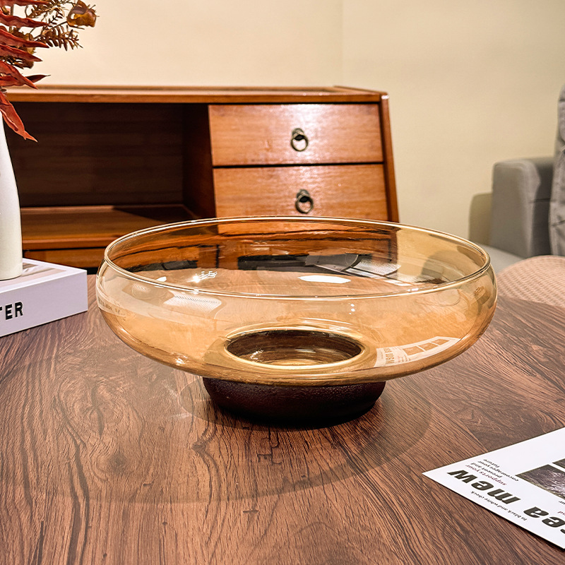 • 유리 원목 과일 접시 [호박색]