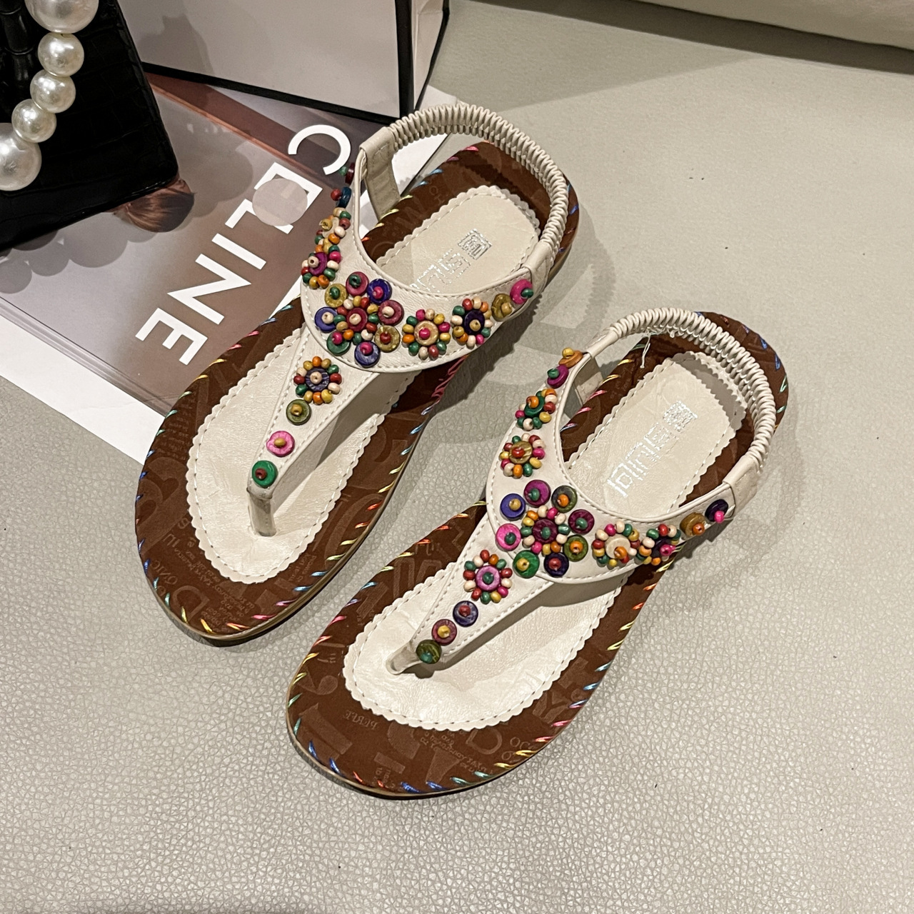 샌들 여성 2023 새로운 여성 신발 여름 보헤미안 힙합 플랫 샌들 여성용 비즈 비치 슈즈 여성 도매스토어 가기