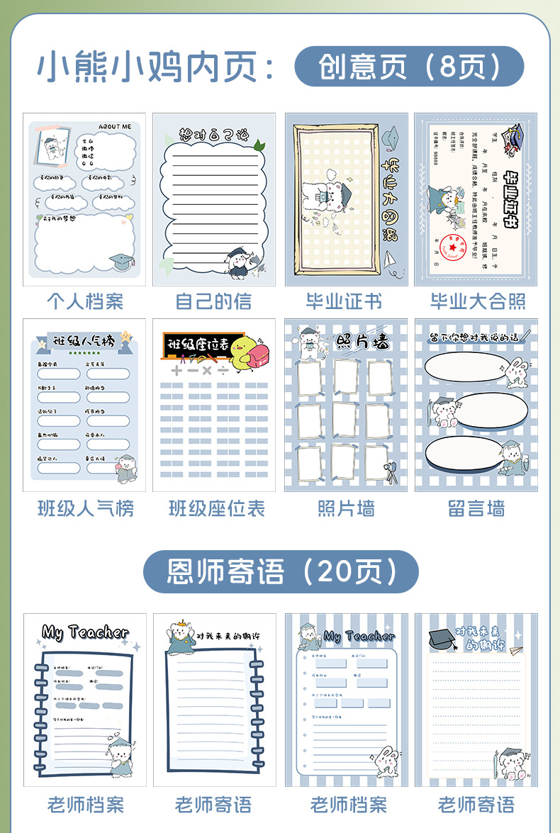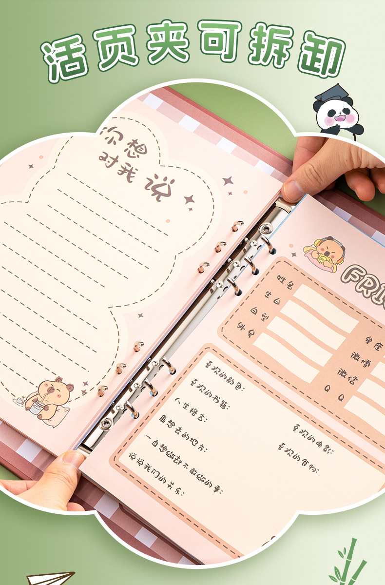 만화 동급생 기념 책 귀여운 팬더 바람 메시지 졸업 책 바인더 소년과 소녀를위한 새로운 동급생 기록