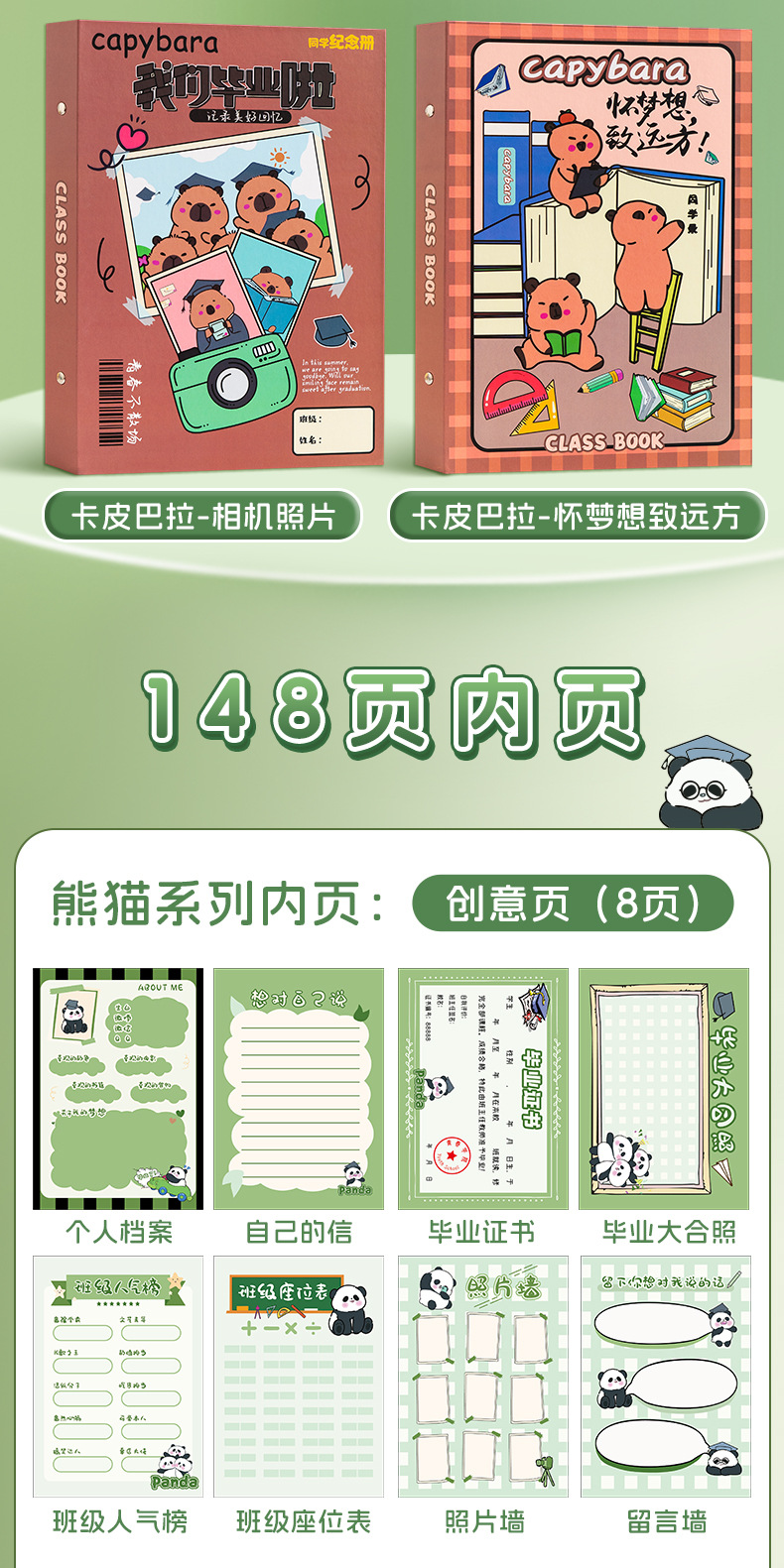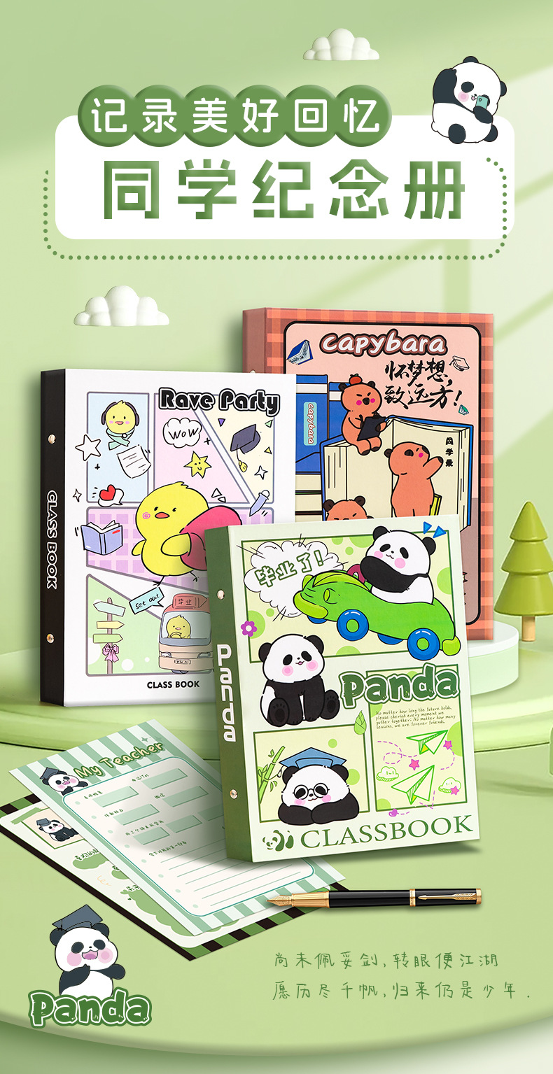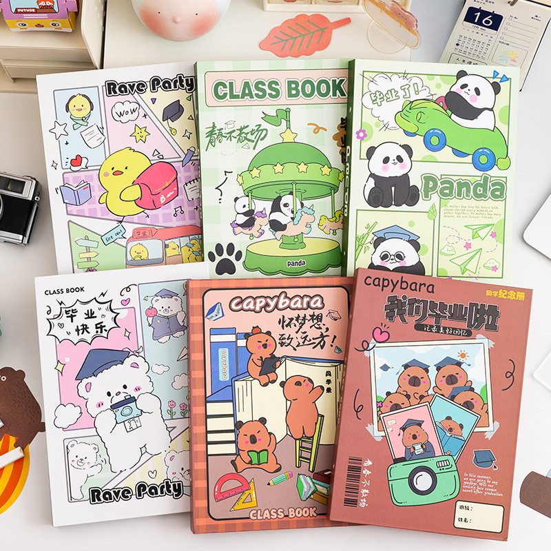 만화 동급생 기념 책 귀여운 팬더 바람 메시지 졸업 책 바인더 소년과 소녀를위한 새로운 동급생 기록스토어 가기