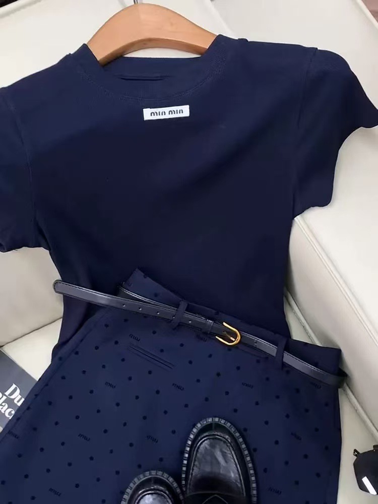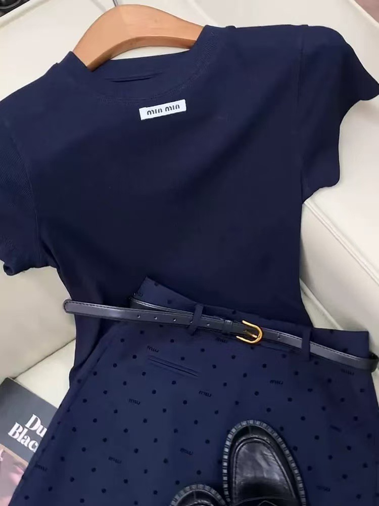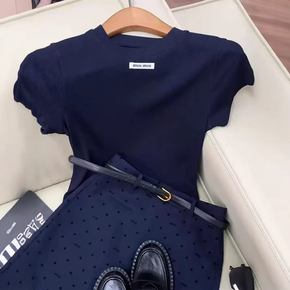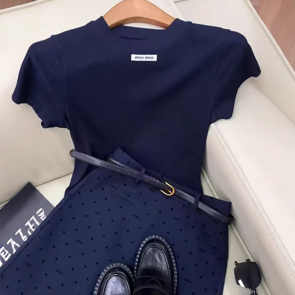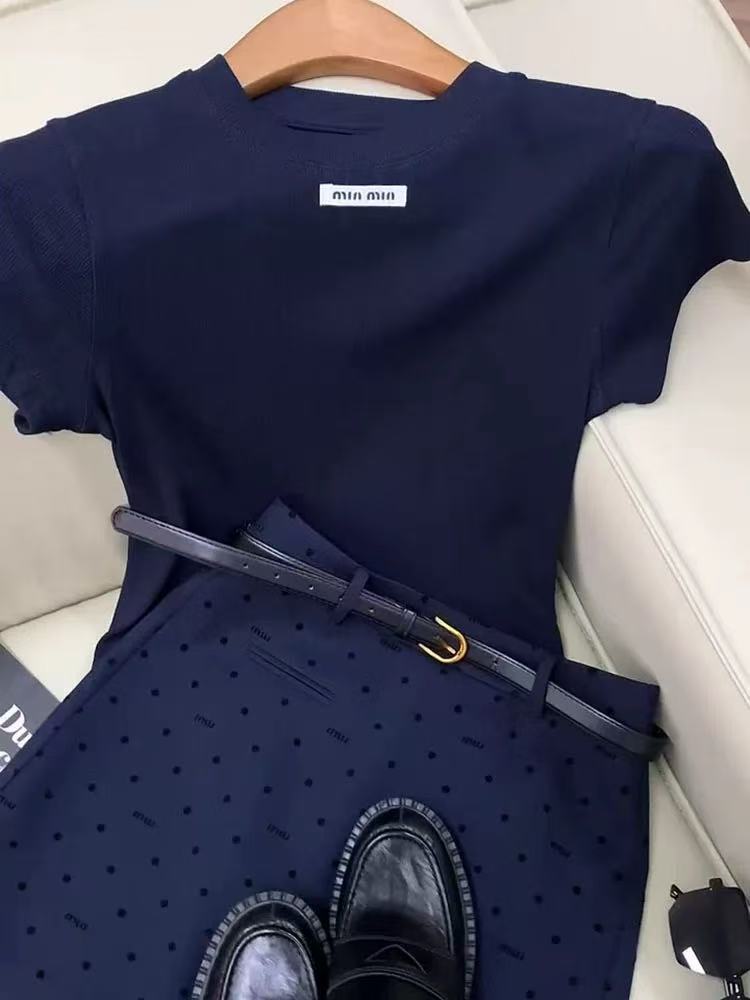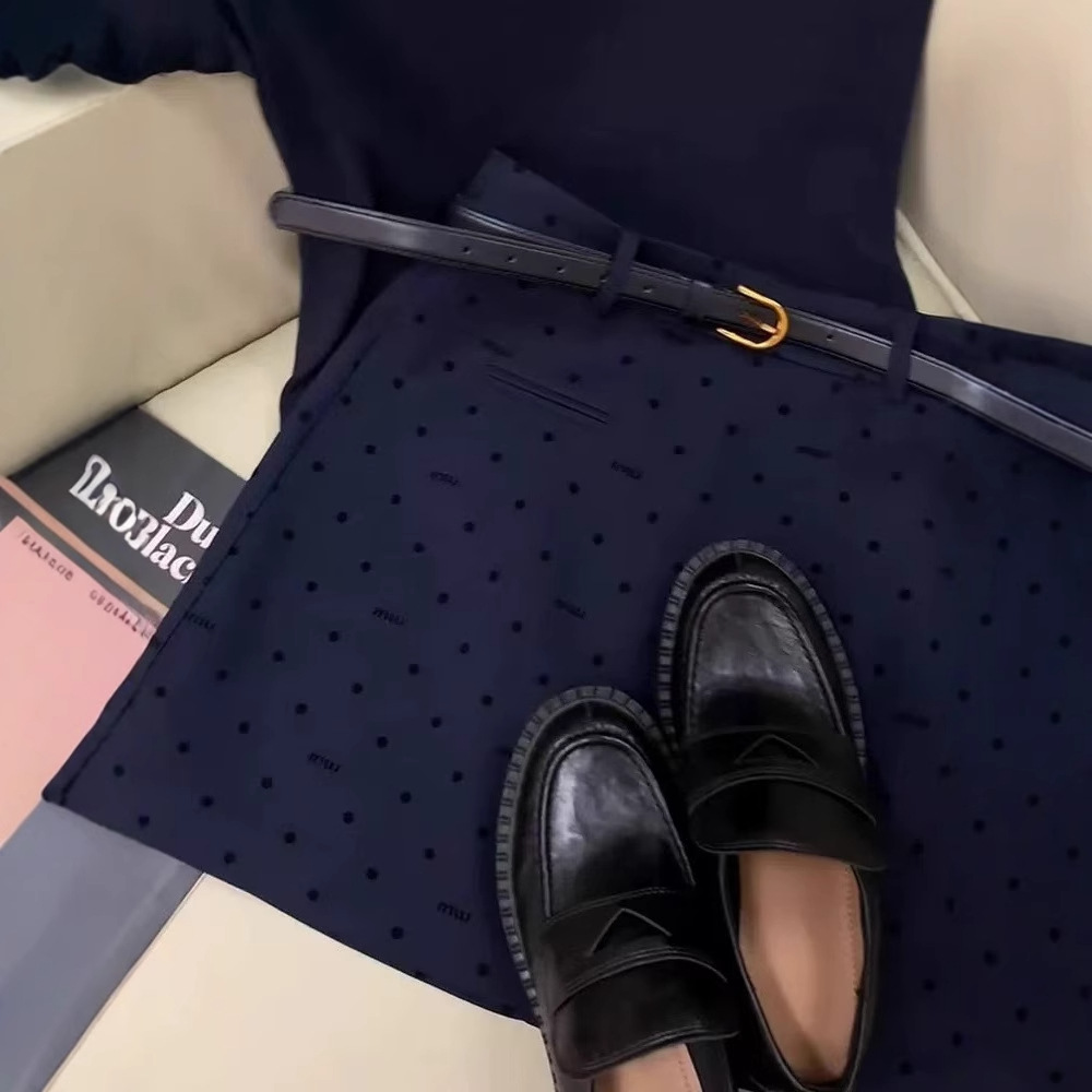 프랑스 하이 엔드 독특한 올매치 하이 엔드 센스 네이비 톱 스커트 여자 2025 봄 폴리 제트 슬리밍 단순스토어 가기