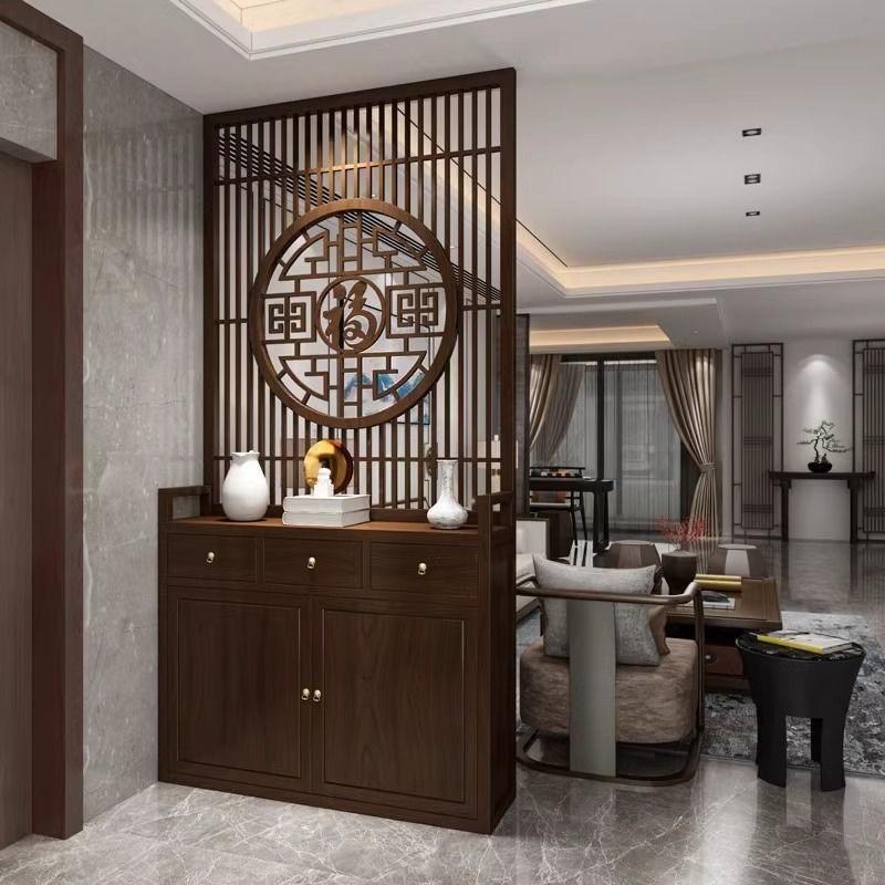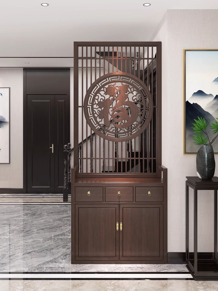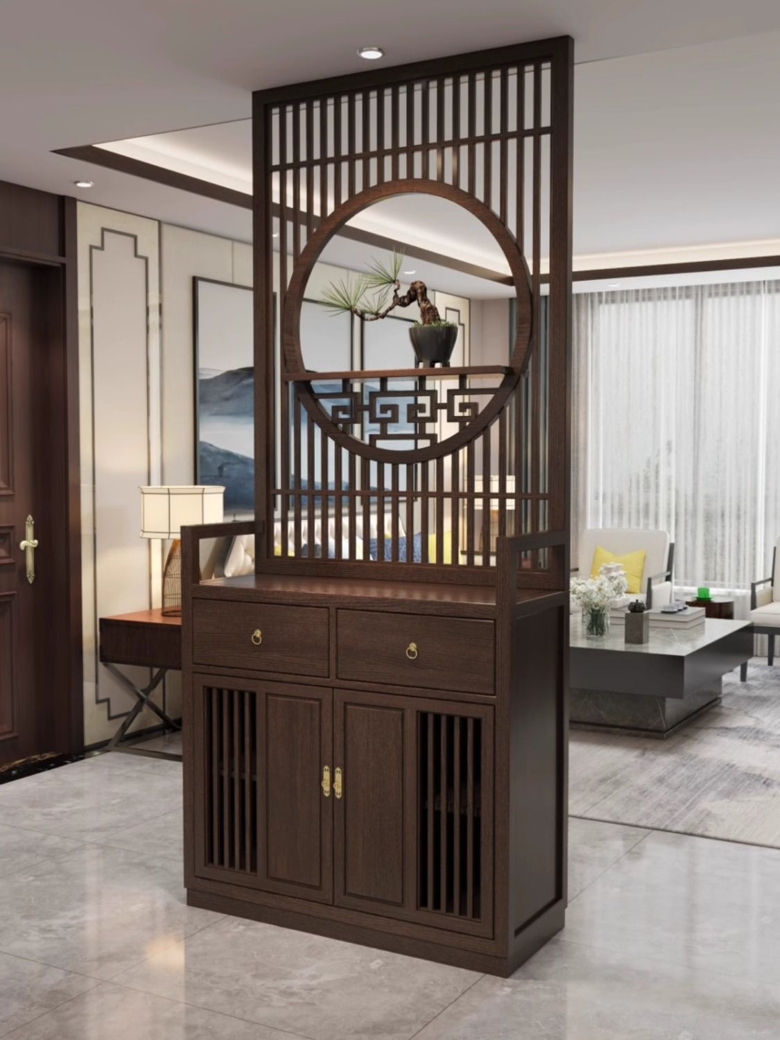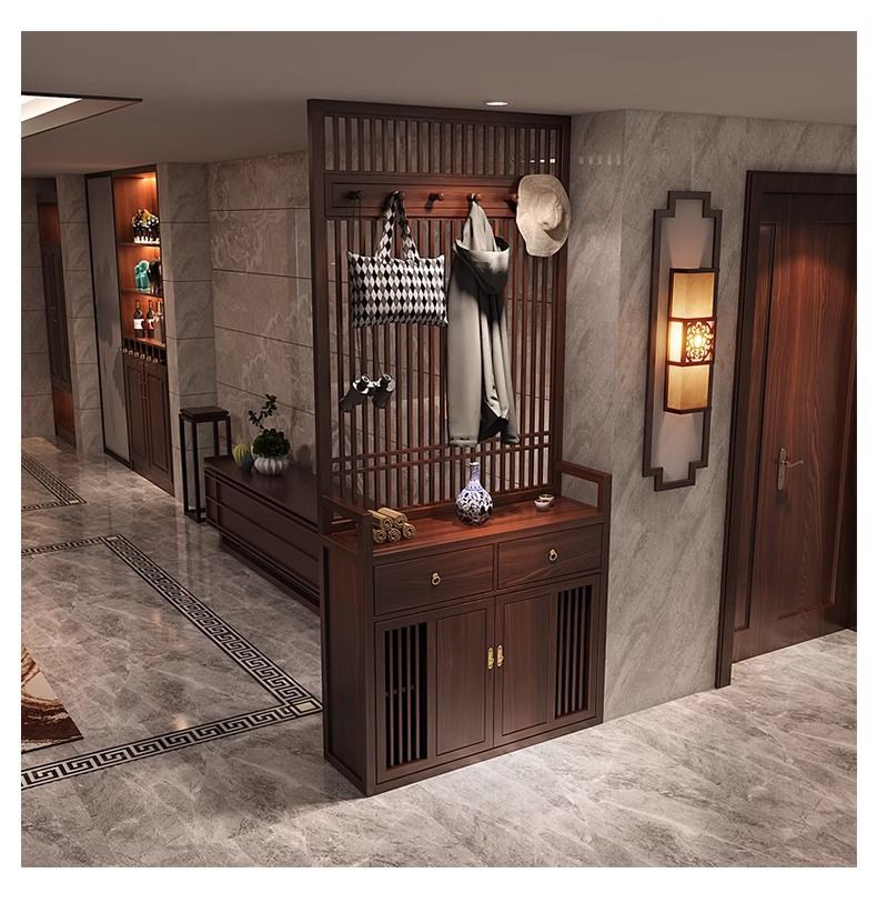 새로운 중국 스타일 가정용 솔리드 우드 입구 신발 캐비닛 통합 현대 음영 장식 랙 파티션 거실 화면 보관
