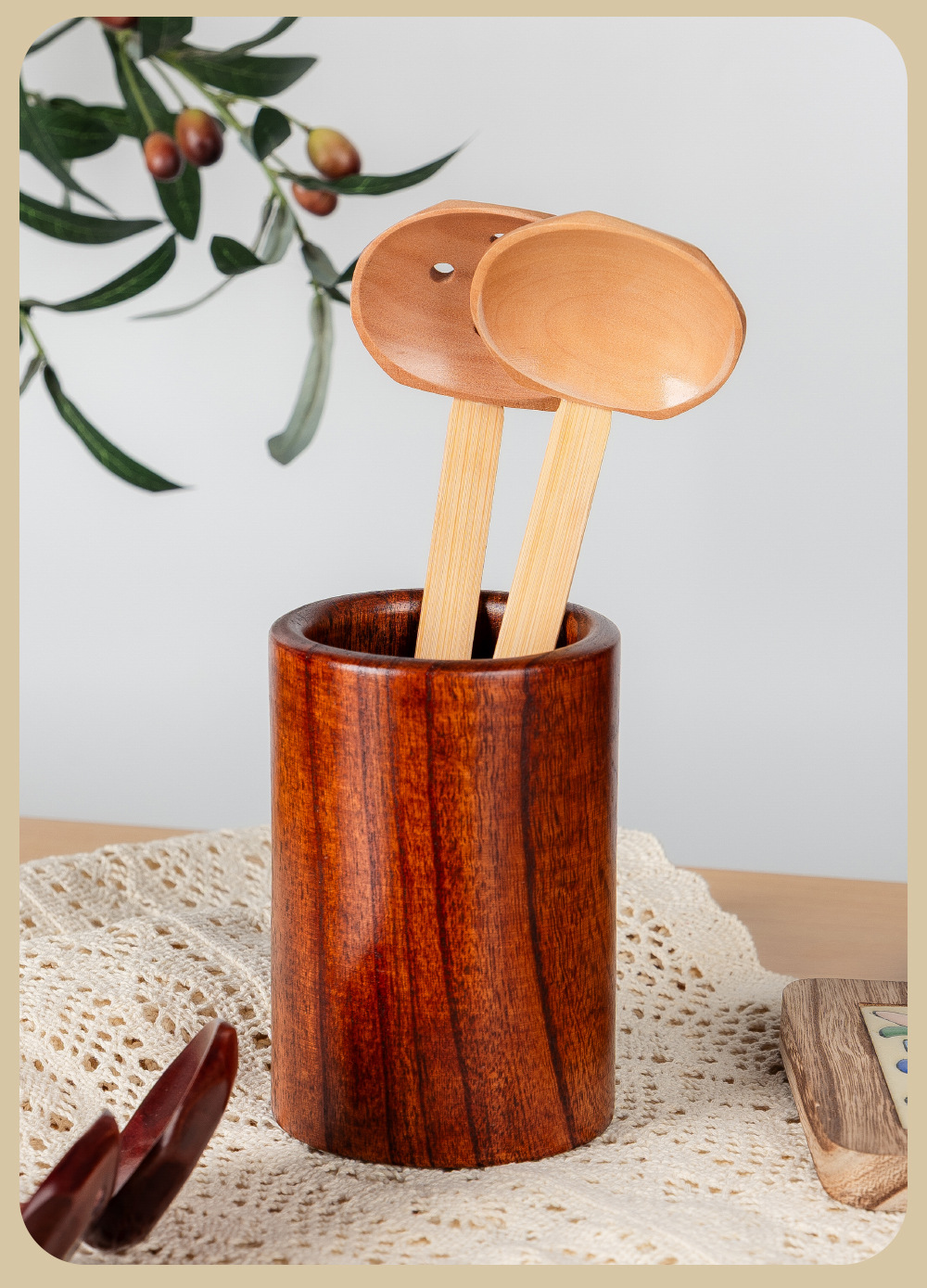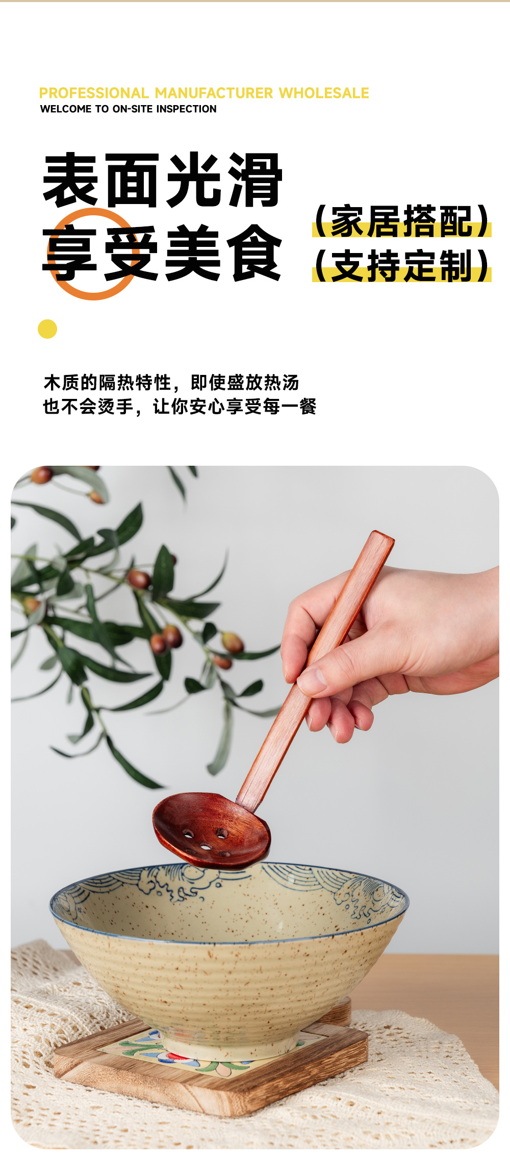 솔리드 우드 팔각형 색소 가정용 핫 팟 수프 스푼 긴 손잡이 라미안 국수 거북이 쉘 스푼 2 피스 세트 도매 및 소매 가정용 식기