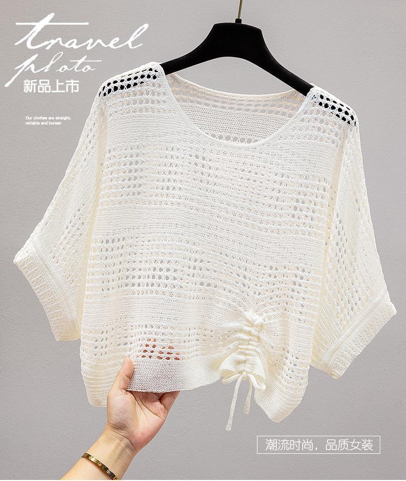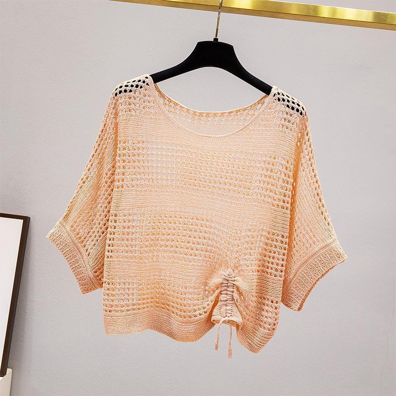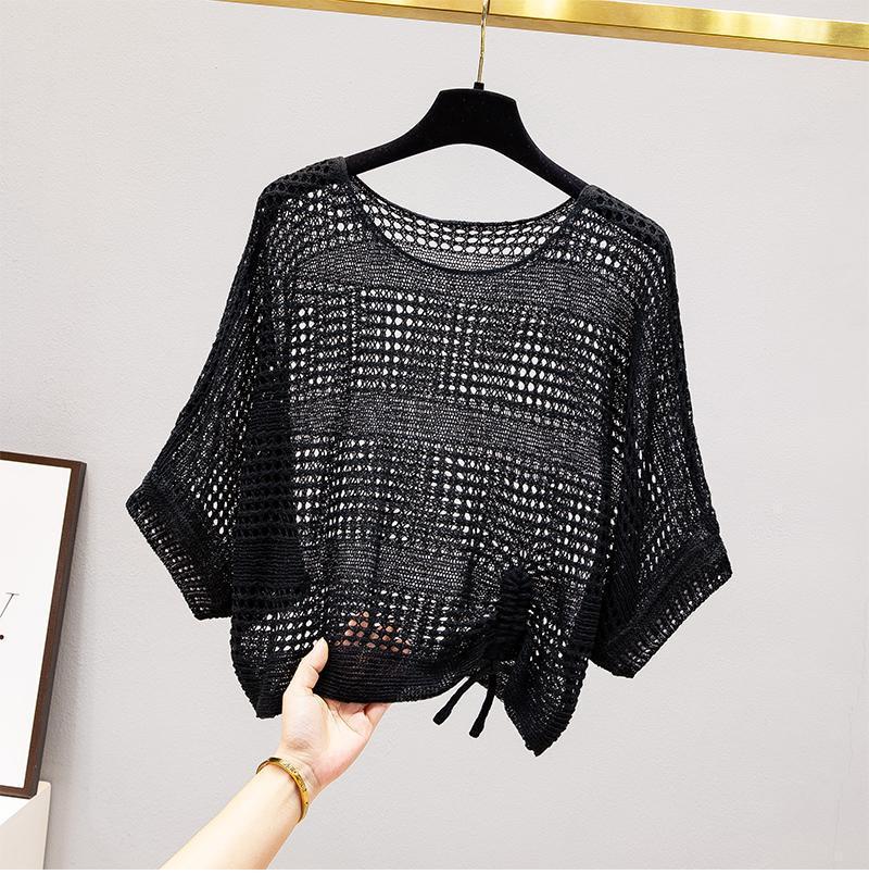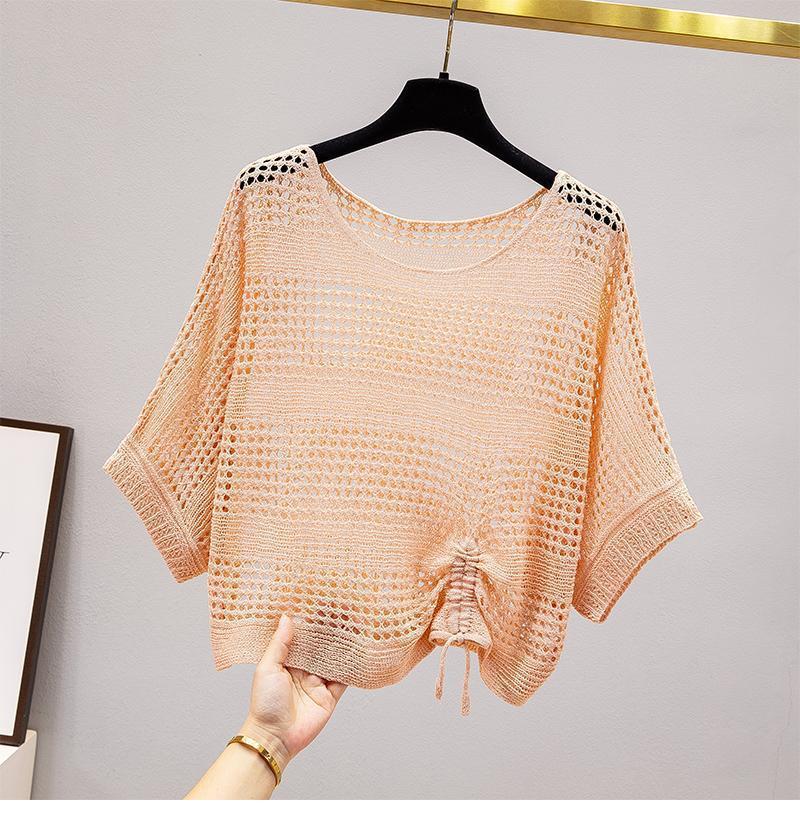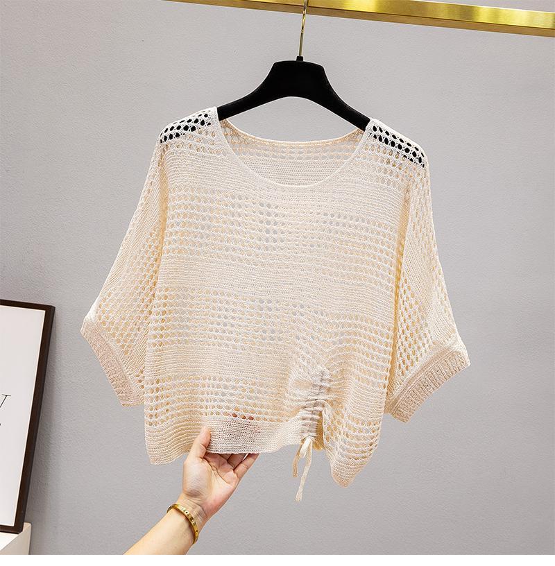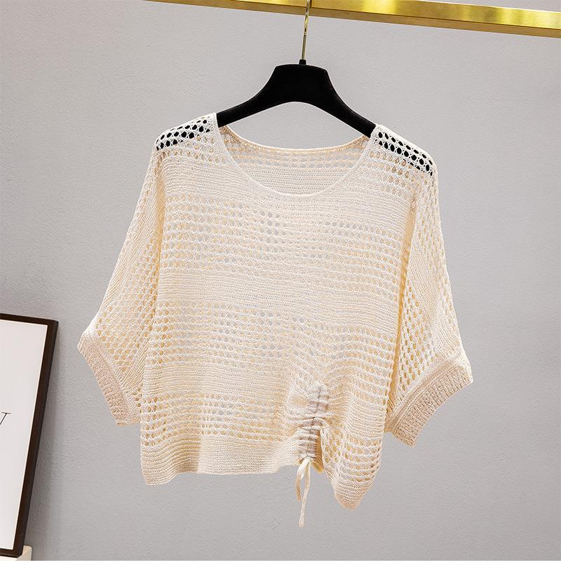 짧은 니트 메쉬 티셔츠 여성용 여름 얇은 할로우 반팔 2025 새로운 느슨한 선 스크린 블라우스스토어 가기