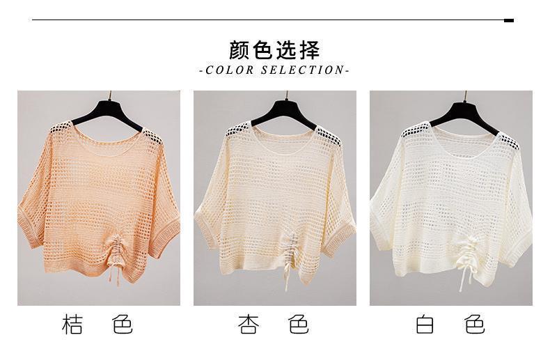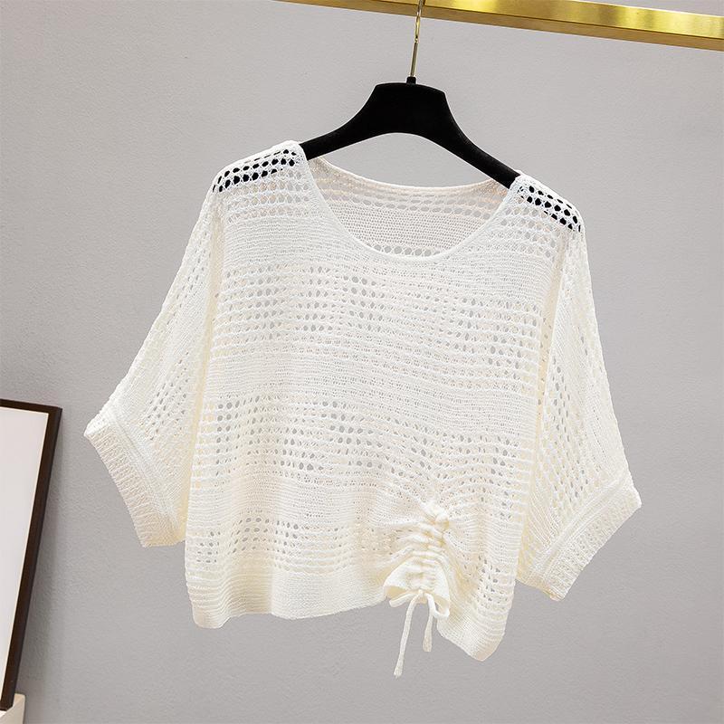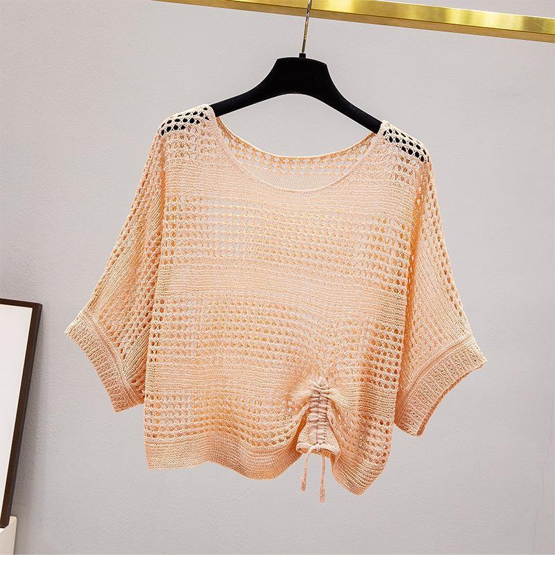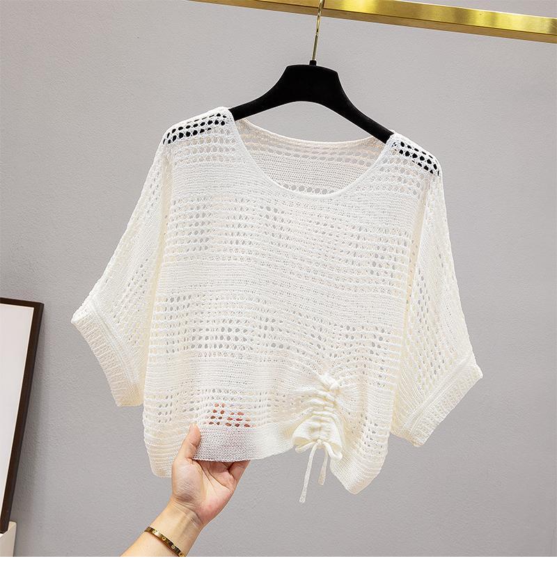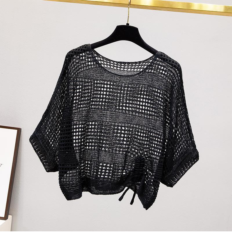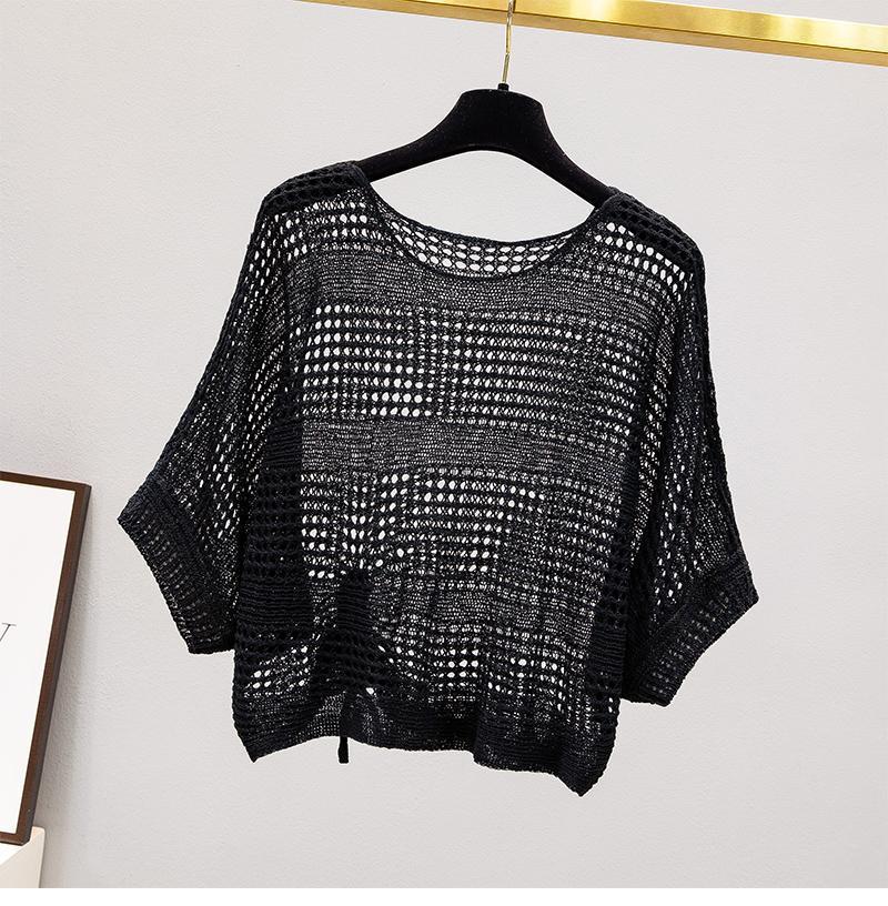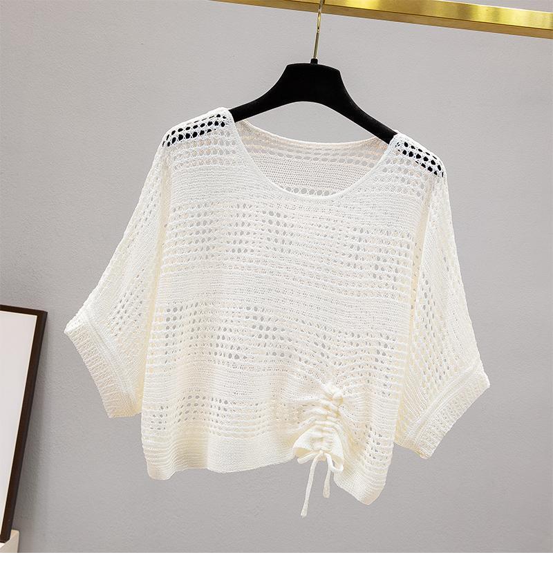 짧은 니트 메쉬 티셔츠 여성용 여름 얇은 할로우 반팔 2025 새로운 느슨한 선 스크린 블라우스스토어 가기