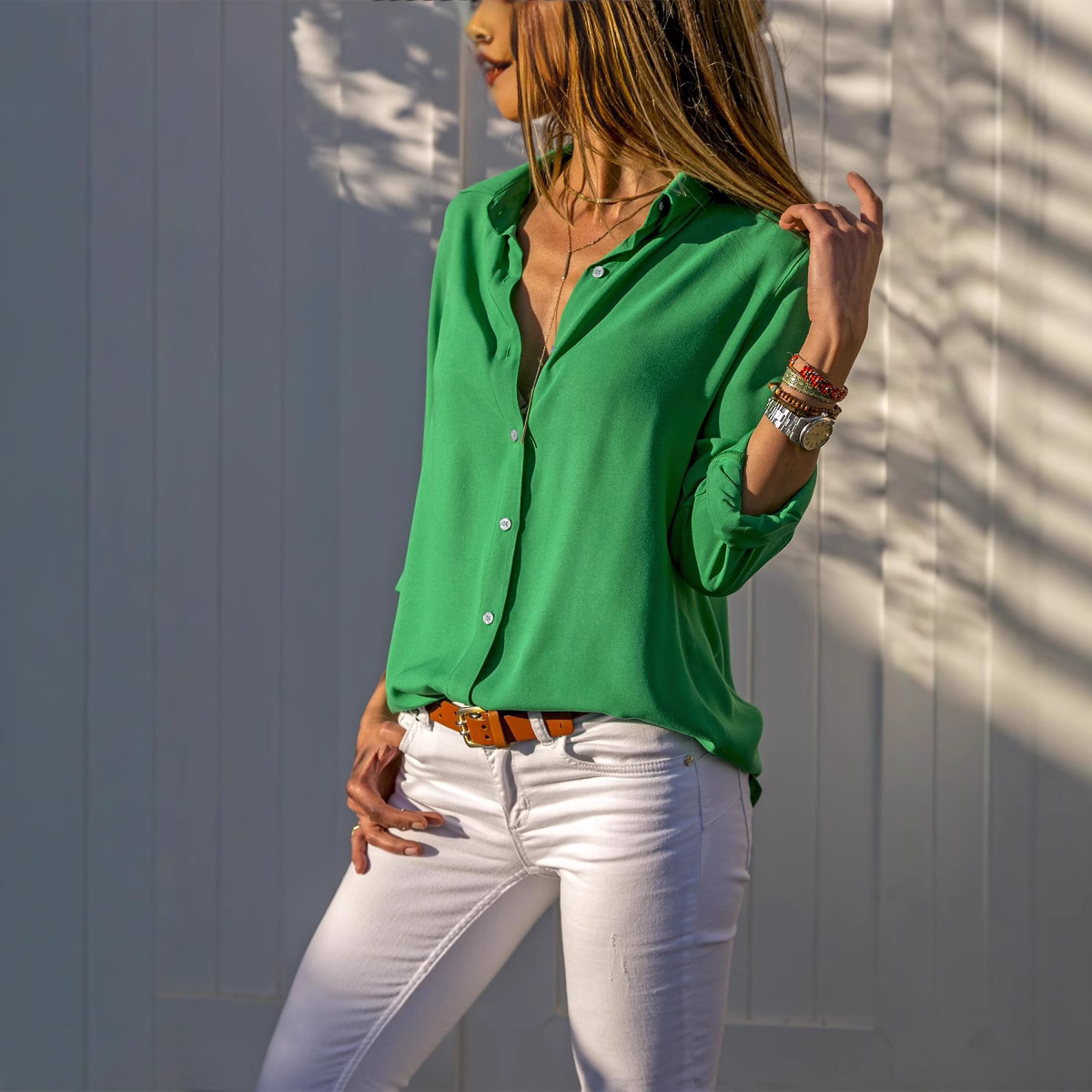 2025 재고 새로운 대외 무역 국경 단색 탑 봄과 가을 긴 소매 우아한 단일 브레스트 카디건 셔츠스토어 가기