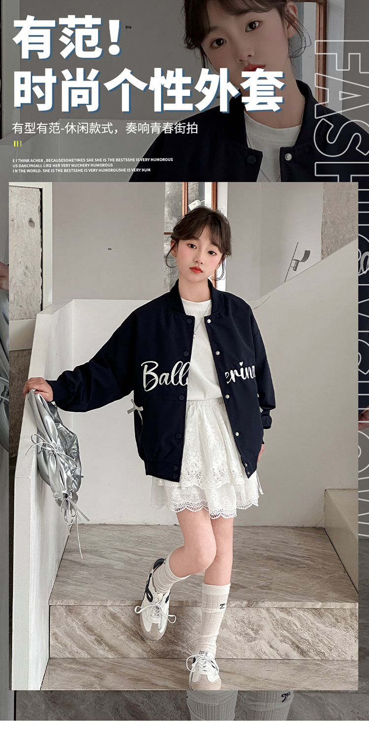 어린이 새 알파벳 야구 세트 2025 서양식 소녀의 봄과 가을 한국 스타일 코트 학생의 느슨한 올 매치 재킷 트렌디스토어 가기