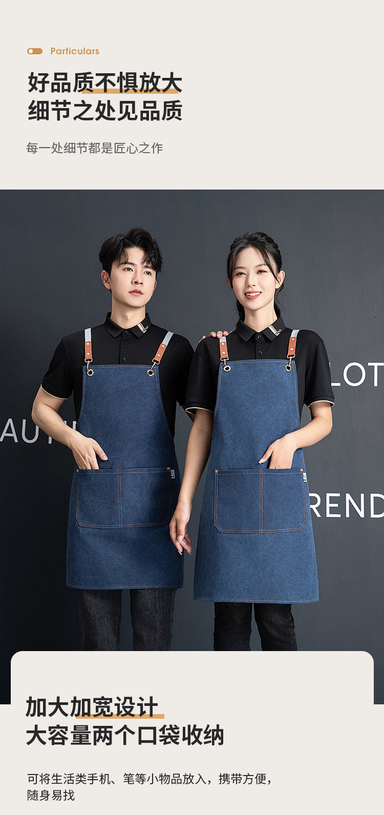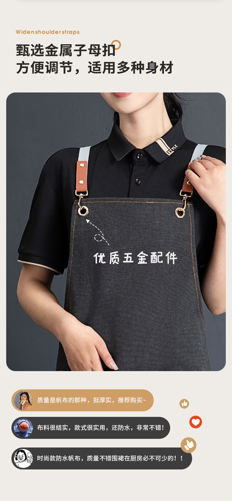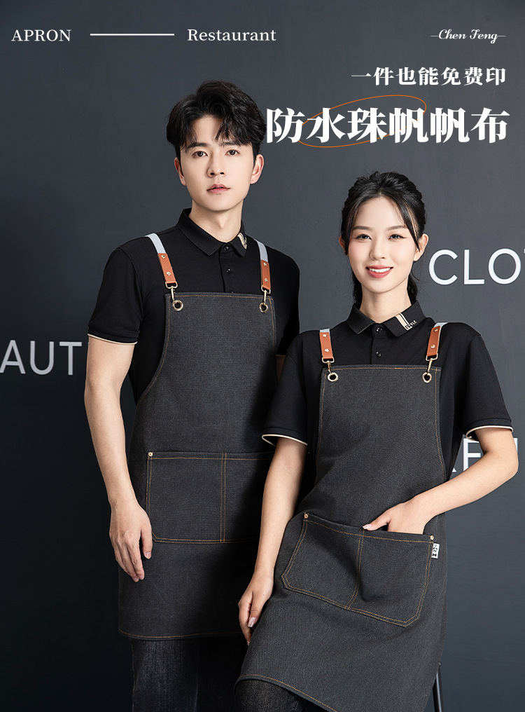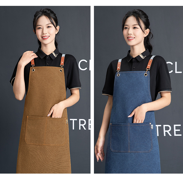 고급 두꺼운 캔버스 방수 앞치마 주방 우유 차 커피 숍 케이터링 작업복 맞춤 로고 인쇄