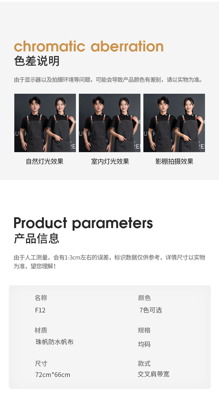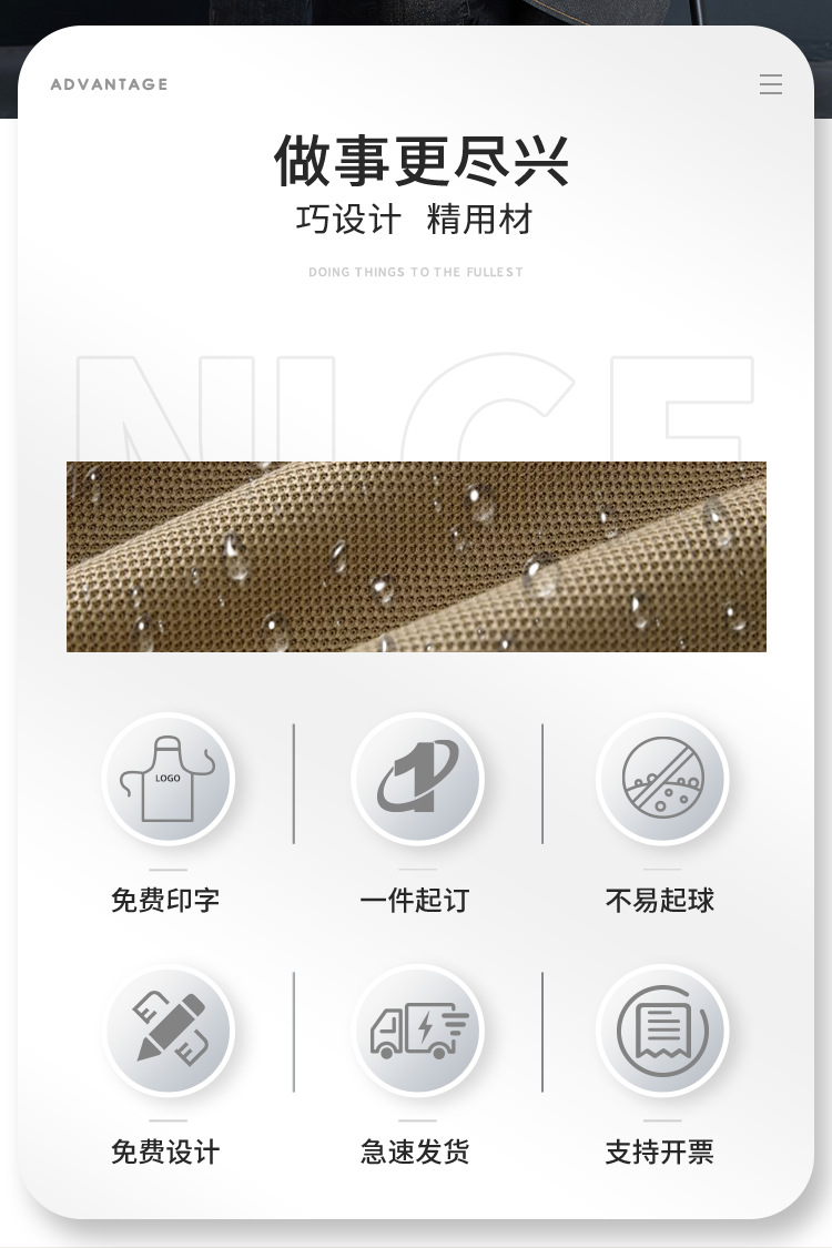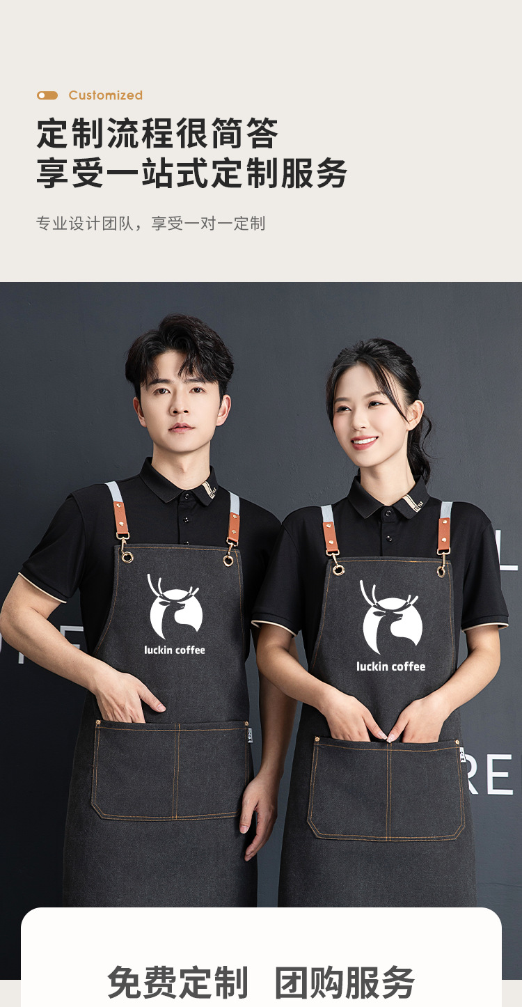 고급 두꺼운 캔버스 방수 앞치마 주방 우유 차 커피 숍 케이터링 작업복 맞춤 로고 인쇄