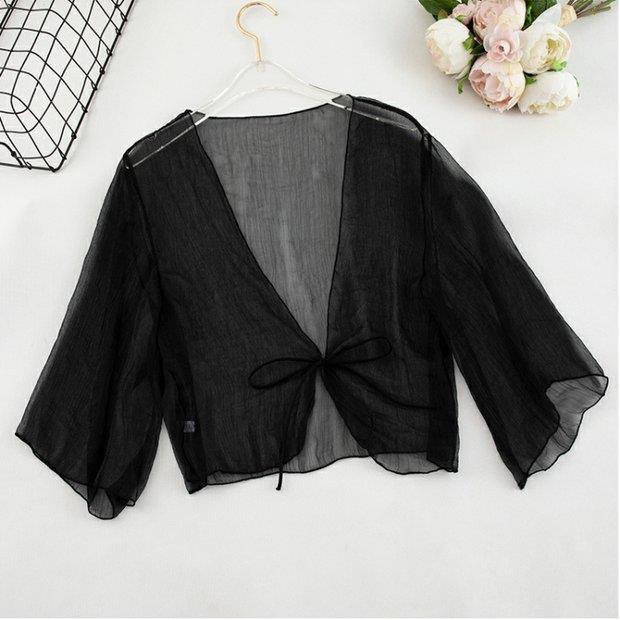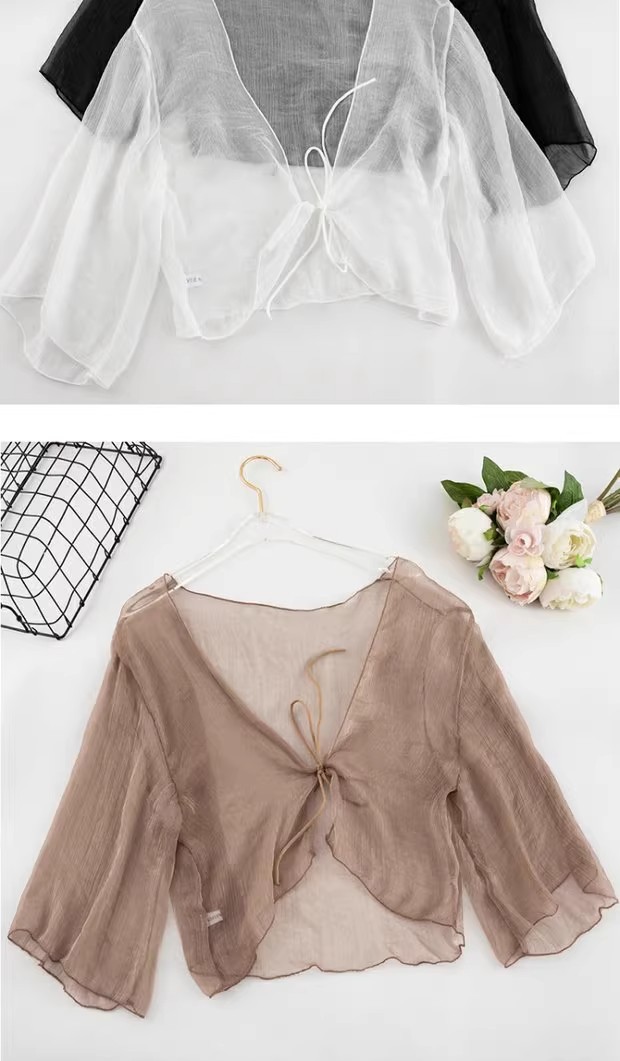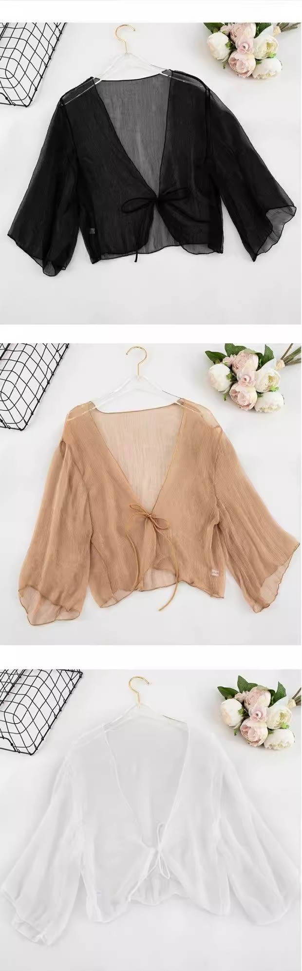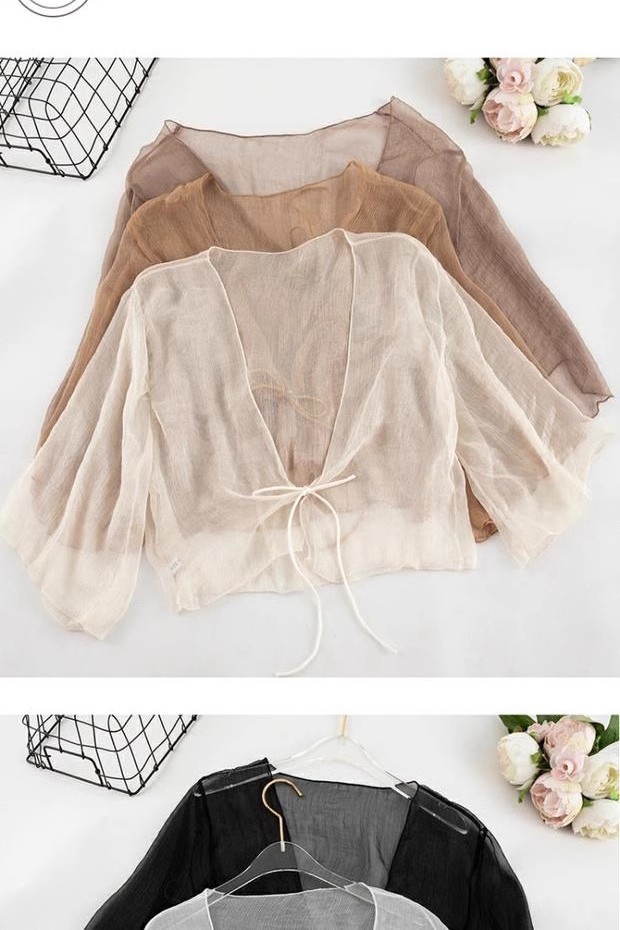 봄 얇은 얼음 실크 카디건 여성용 자외선 차단제 짧은 유행 목도리 블라우스 서스펜더 스커트 오버피팅 에어컨 셔츠스토어 가기