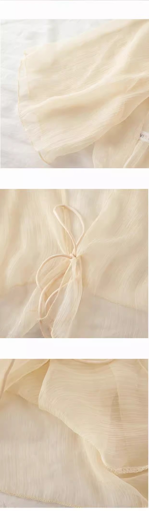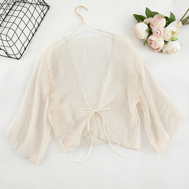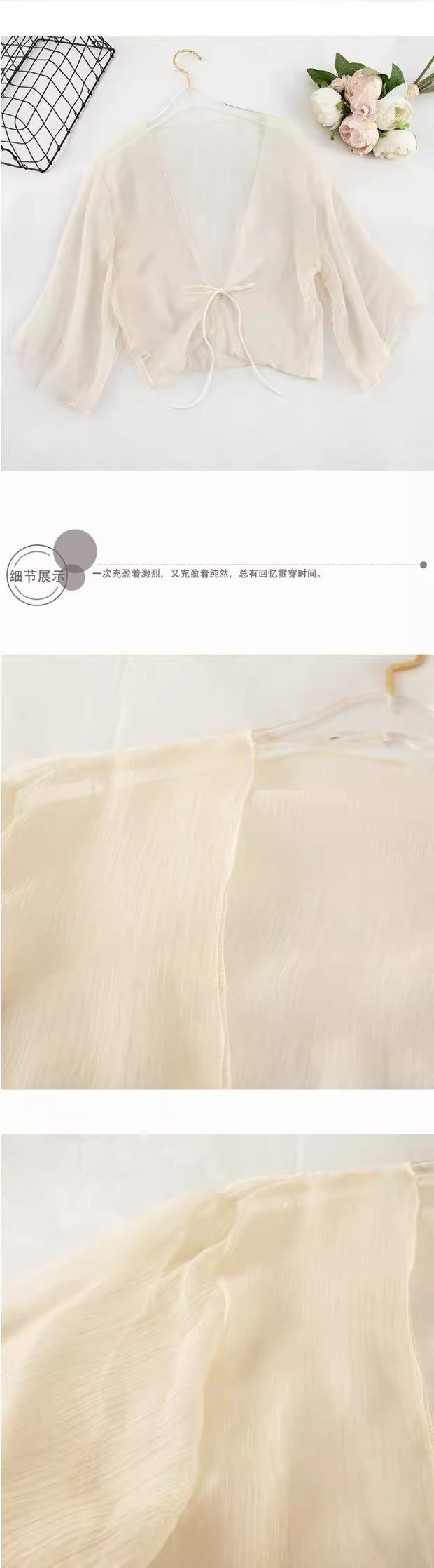봄 얇은 얼음 실크 카디건 여성용 자외선 차단제 짧은 유행 목도리 블라우스 서스펜더 스커트 오버피팅 에어컨 셔츠