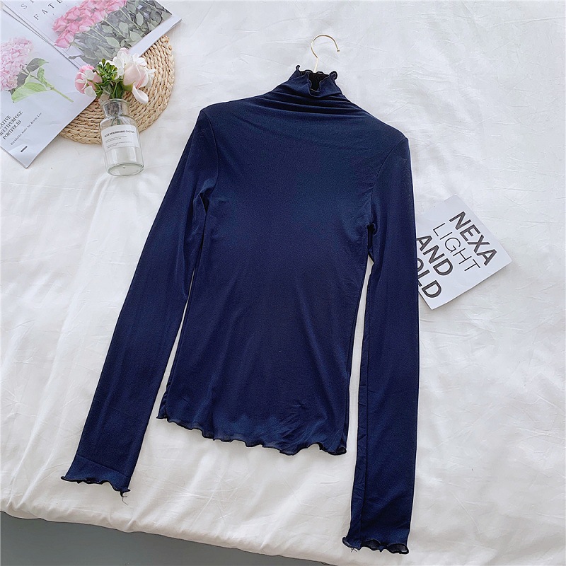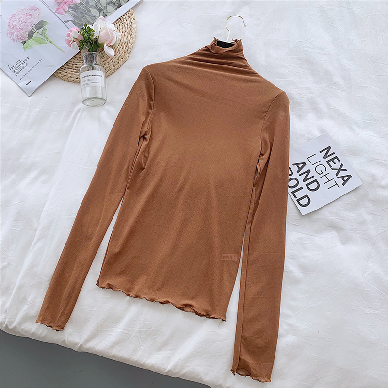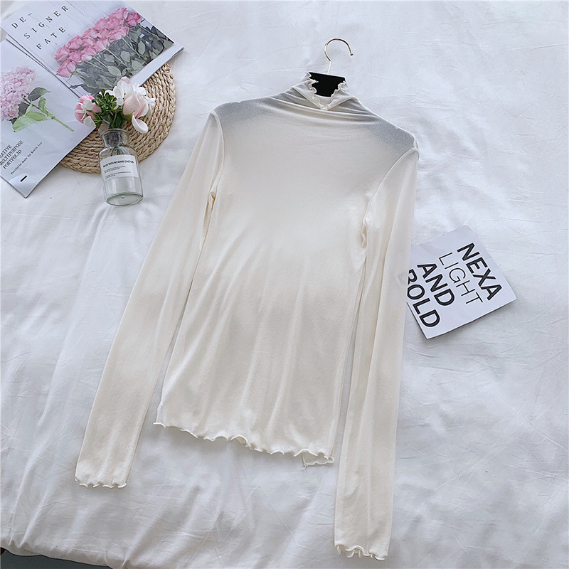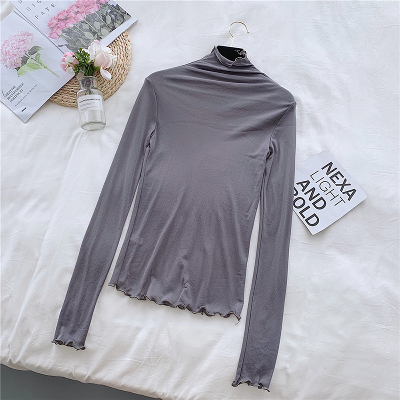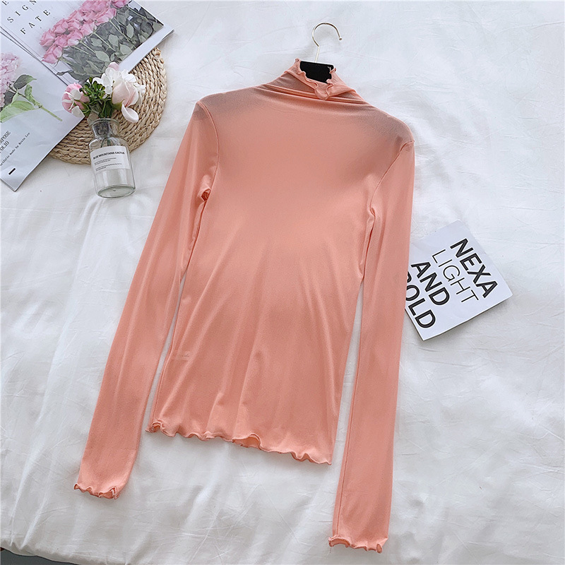 마카롱 메쉬베이스 셔츠 여자 봄과 가을 올 매치 이너 티셔츠 긴팔 탑 얇은 보라색 블랙 화이트스토어 가기