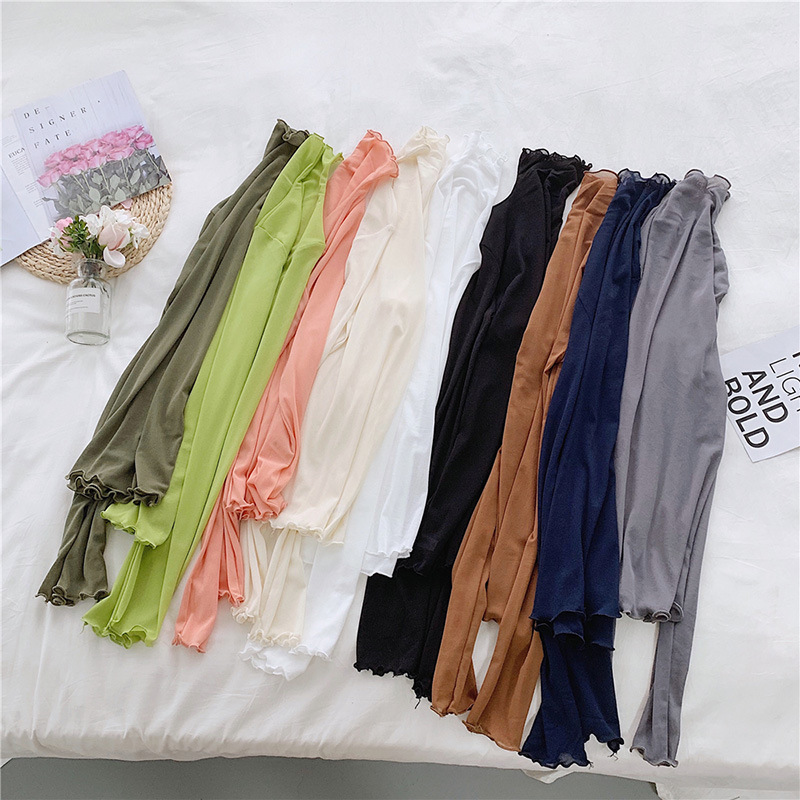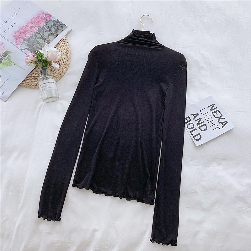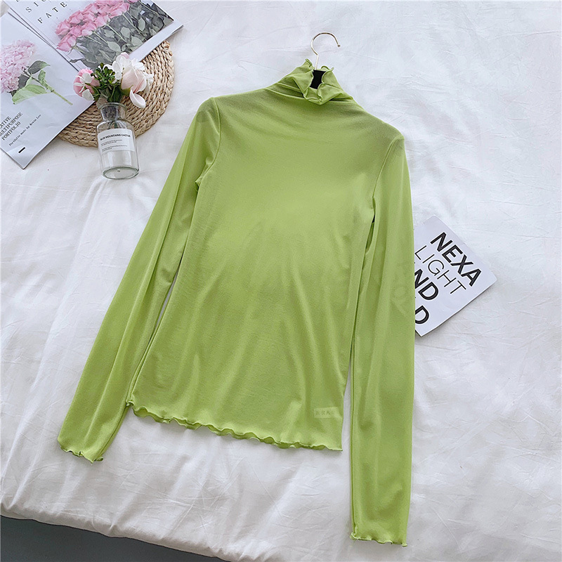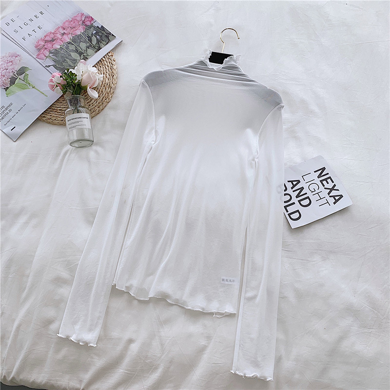 마카롱 메쉬베이스 셔츠 여자 봄과 가을 올 매치 이너 티셔츠 긴팔 탑 얇은 보라색 블랙 화이트
