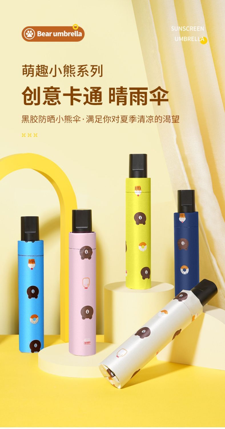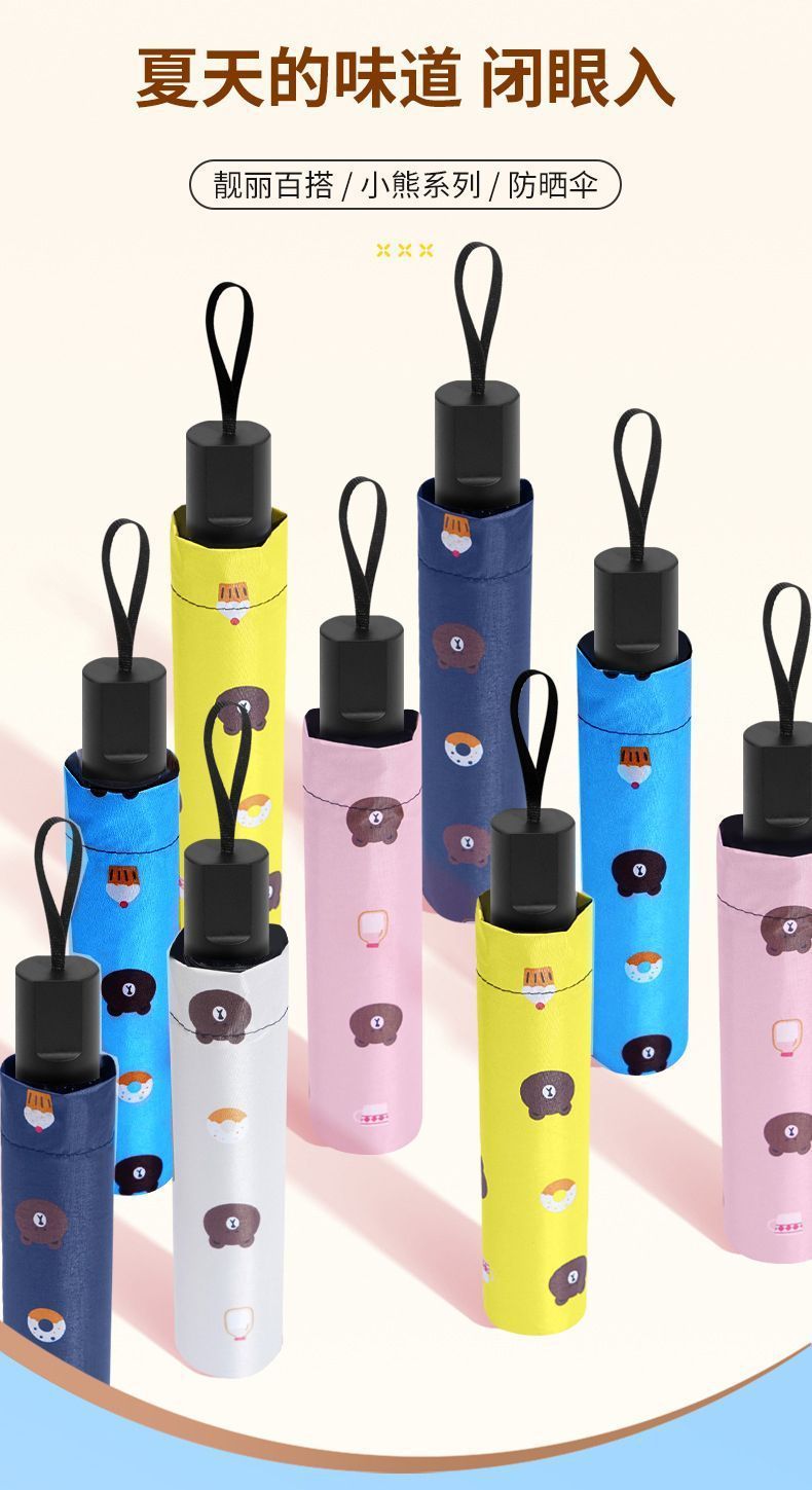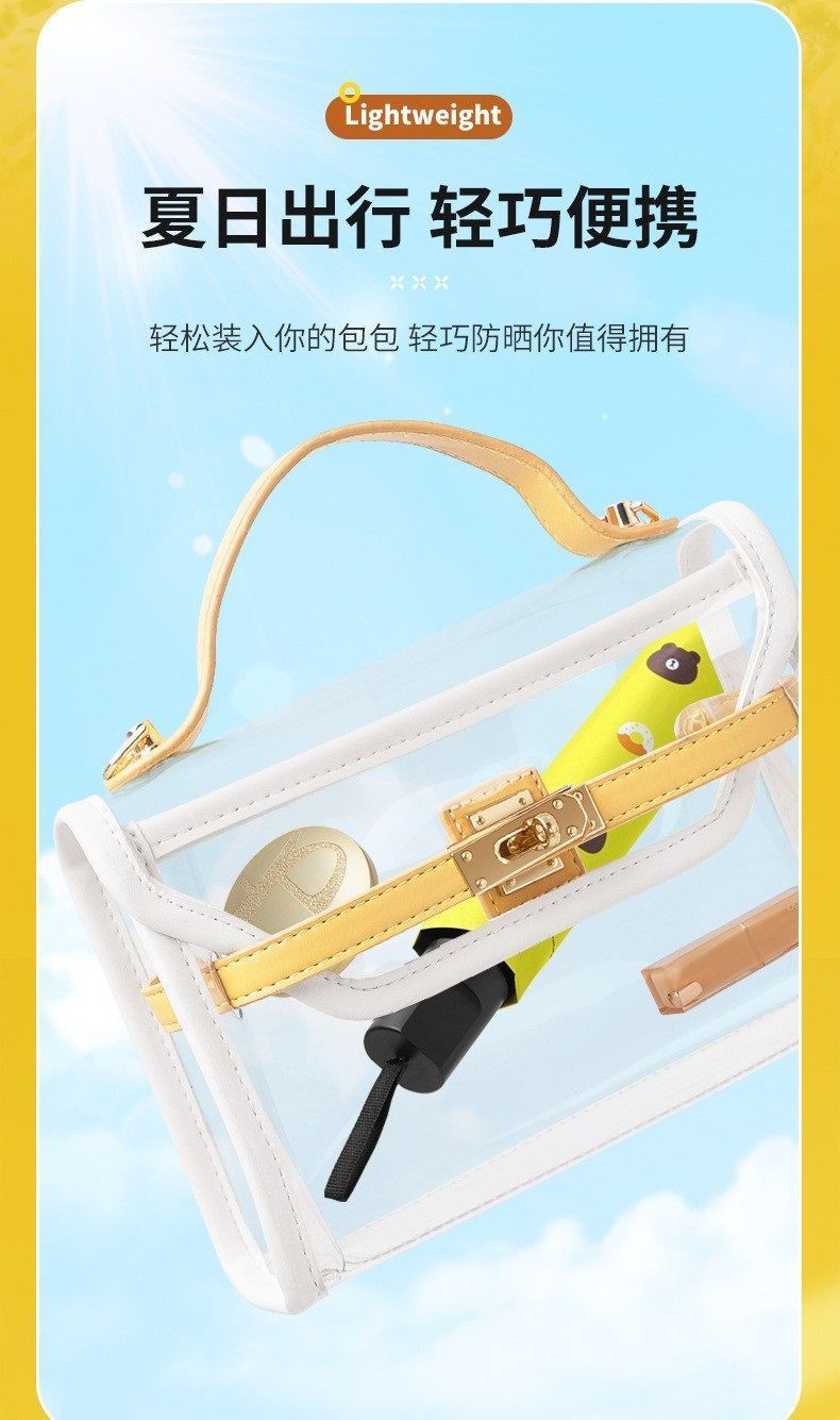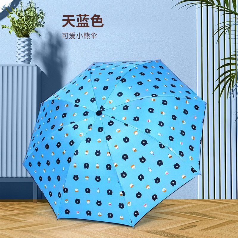 수동 귀여운 곰 접히는 맑고 비오는 우산 검은 고무 햇빛 UV 보호스토어 가기