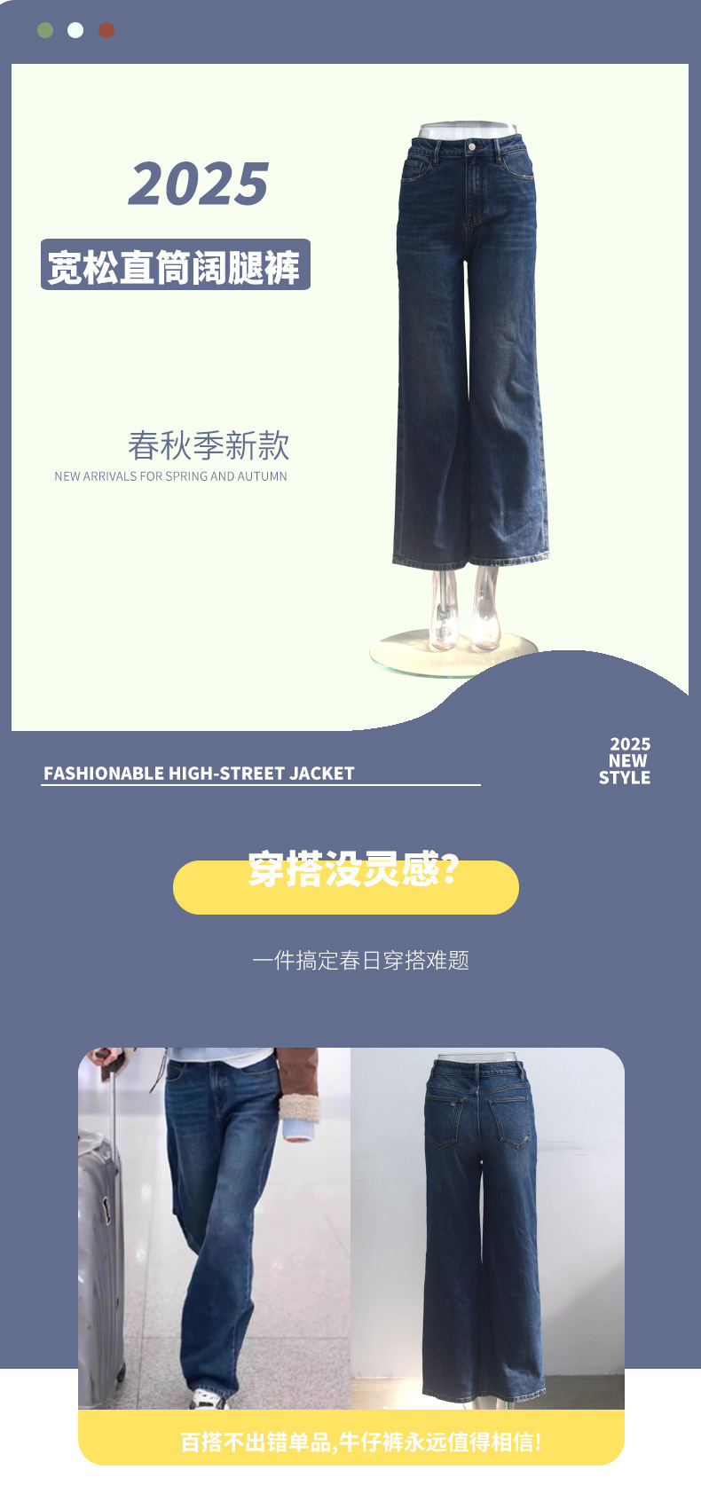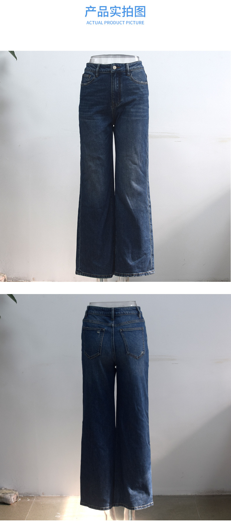 Liu Wen 같은 스타일의 높은 허리 레트로 데님 넓은 다리 바지 여성 봄 2025 새로운 느슨한 투약 스트레이트 바지스토어 가기