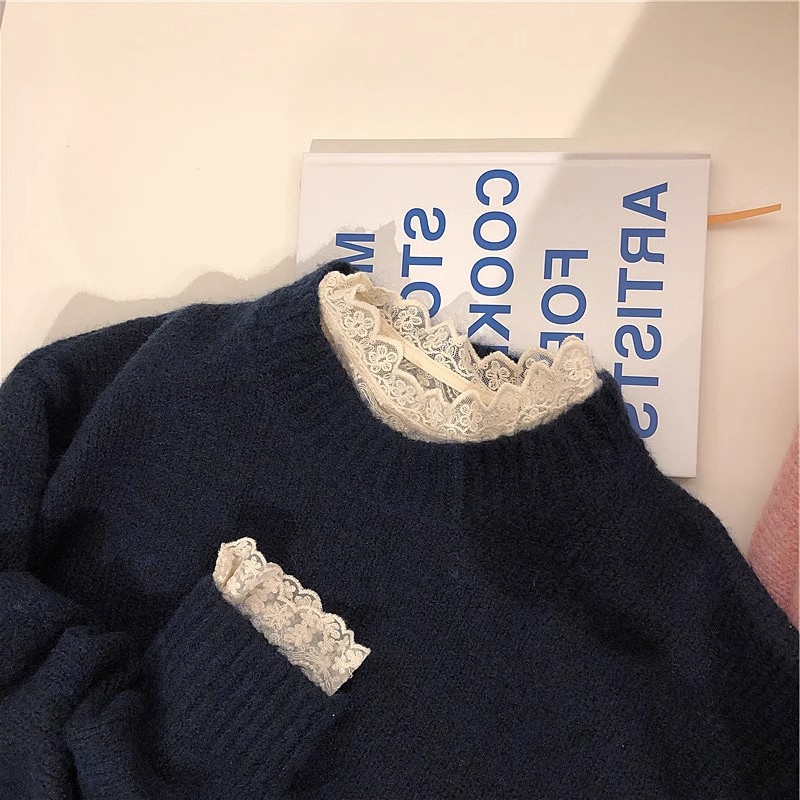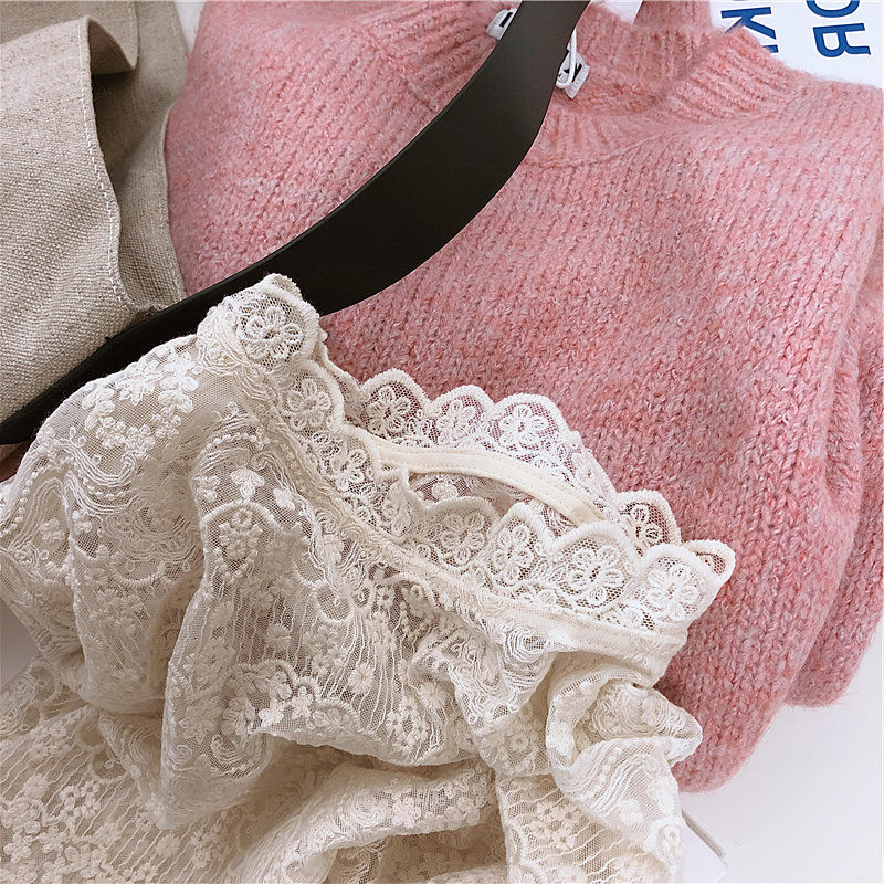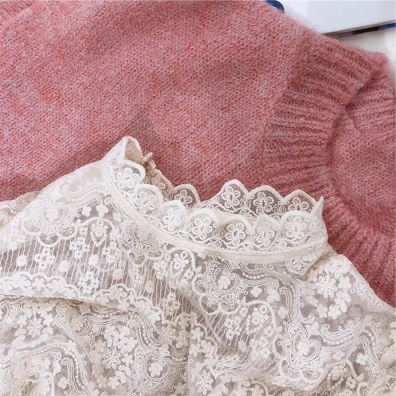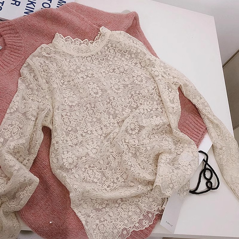 레이스 셔츠 여자 2025 년 초가을 새 반쪽 터틀넥 할로우 긴팔 슬림핏 한국 동대문베이스 셔츠탑스토어 가기